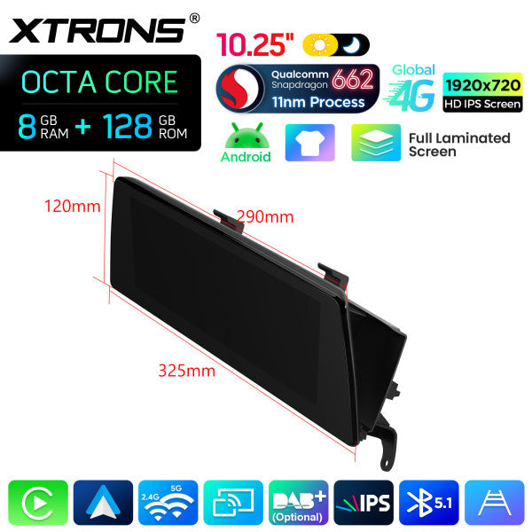 Autoradio Android da 10,25 pollici 8+128 GB Qualcomm Snapdragon 662 con schermo completamente laminato, 4G globale per BMW X3 F25/X4 F26 con sistema NBT