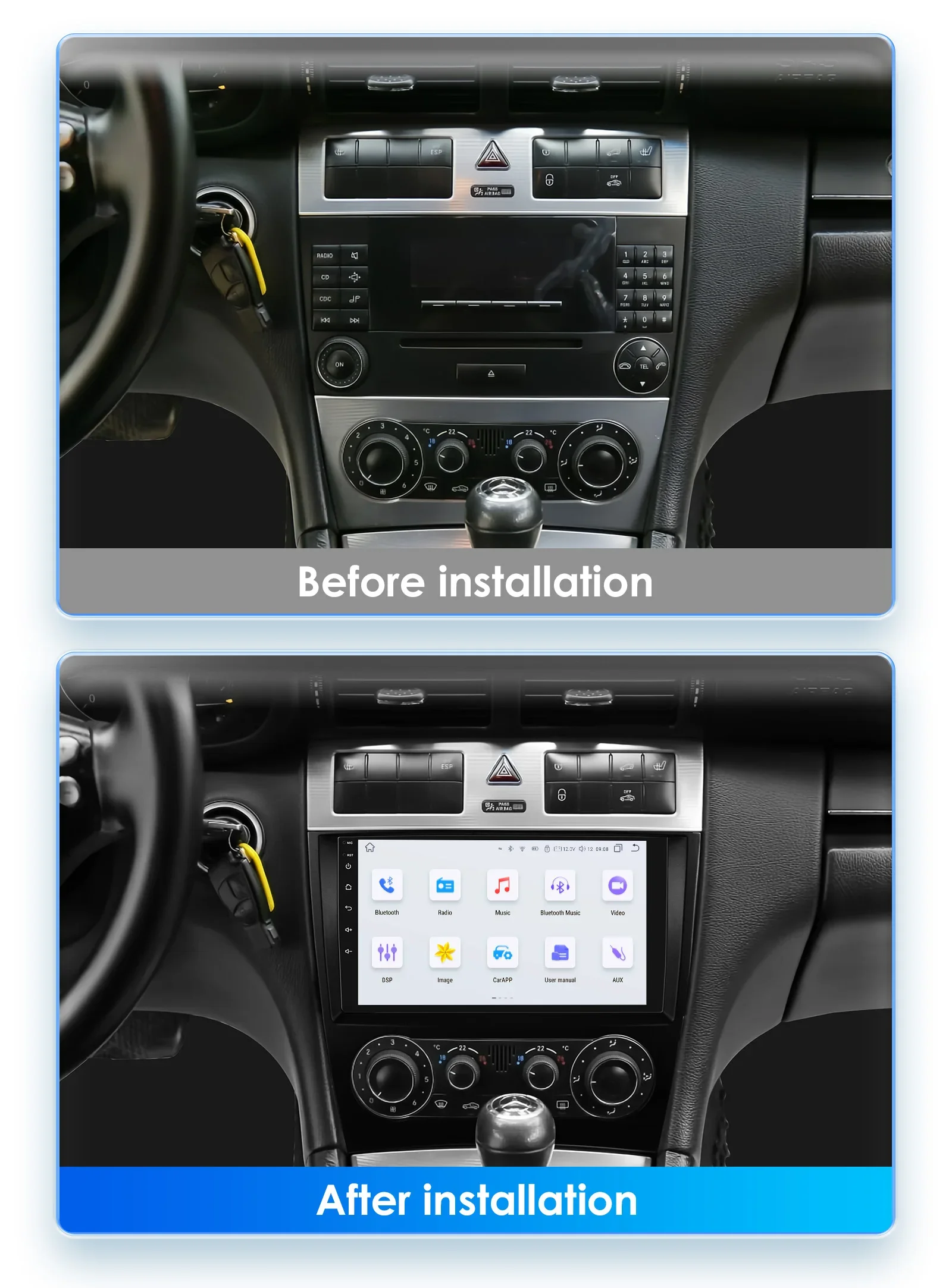 Mercedes Benz CLC W203 C-Class C180 C200 CLK200 CLK W209 9" / 10,33" Android 14 Carplay Android auto wireless wifi bt gps 4g AUTMNWKX