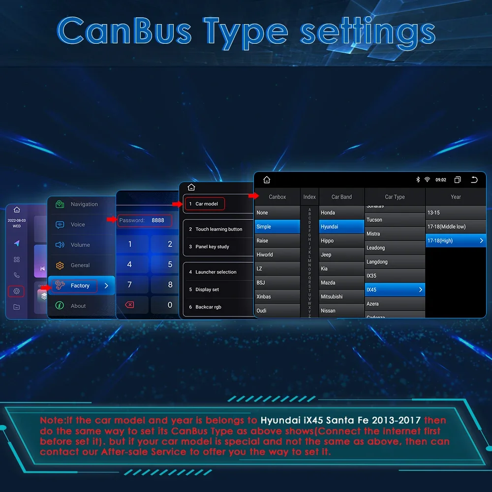 Display informativo originale dell'auto: Impostazioni tipo Canbus: Fabbrica - 8888 - Modello auto - Semplice - Hyundai - IX45 - 17-18 (Alto) - ok.