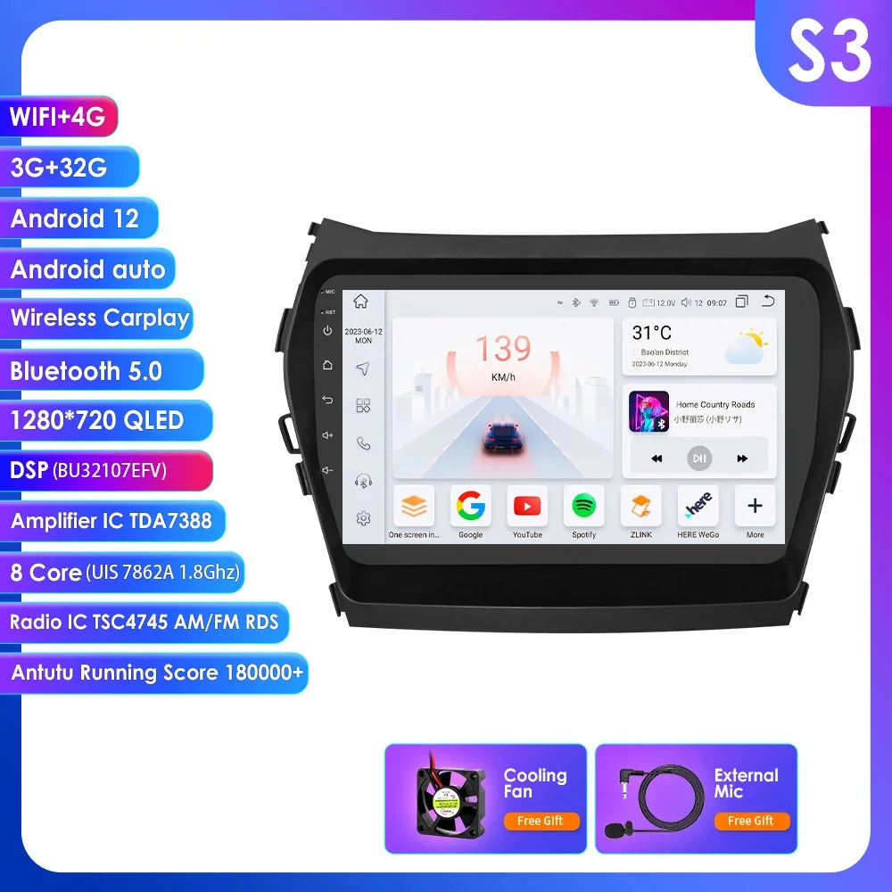 Hyundai Santa Fe 3 2013-2017 IX 45 9" / 10,33" Android 14 Carplay Android auto wireless wifi bt gps 4g AUTM1AC6