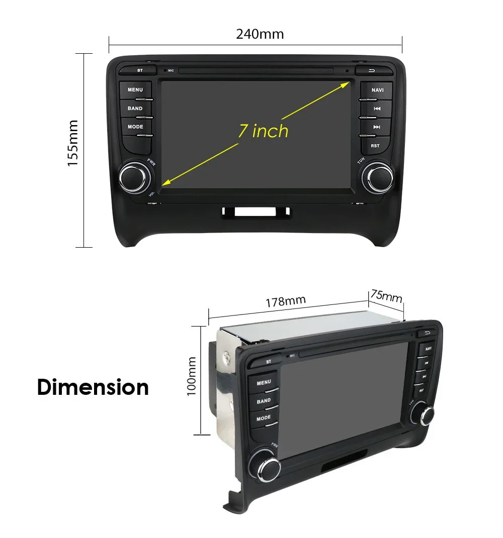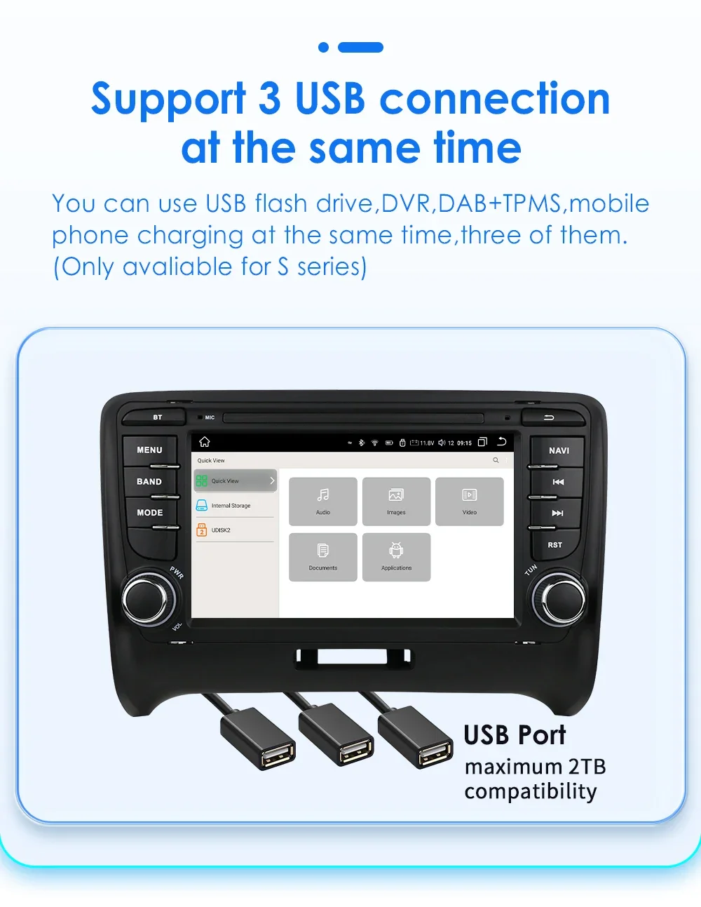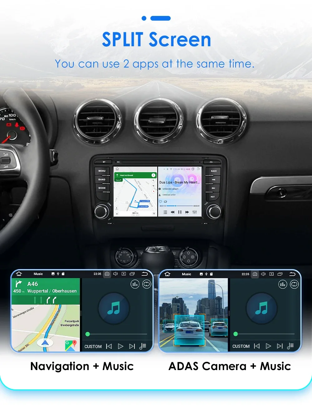 AUDI TT MK2 8J 2006 -2014 7" Android 14 Carplay Android auto wireless wifi bt gps 4g AUTM9BCX