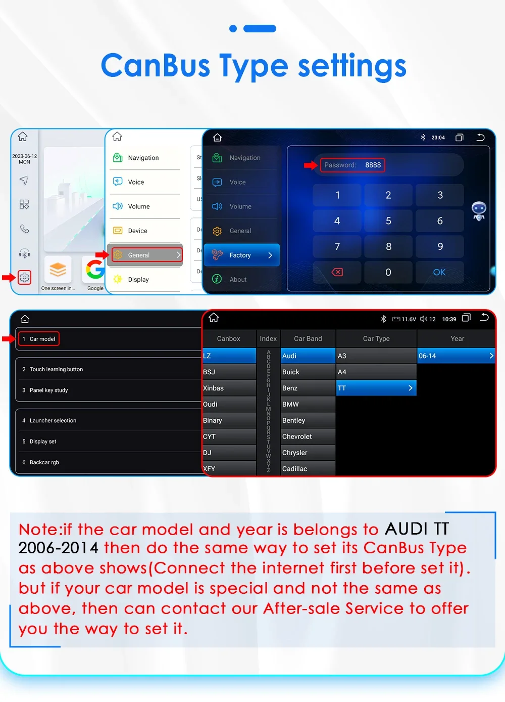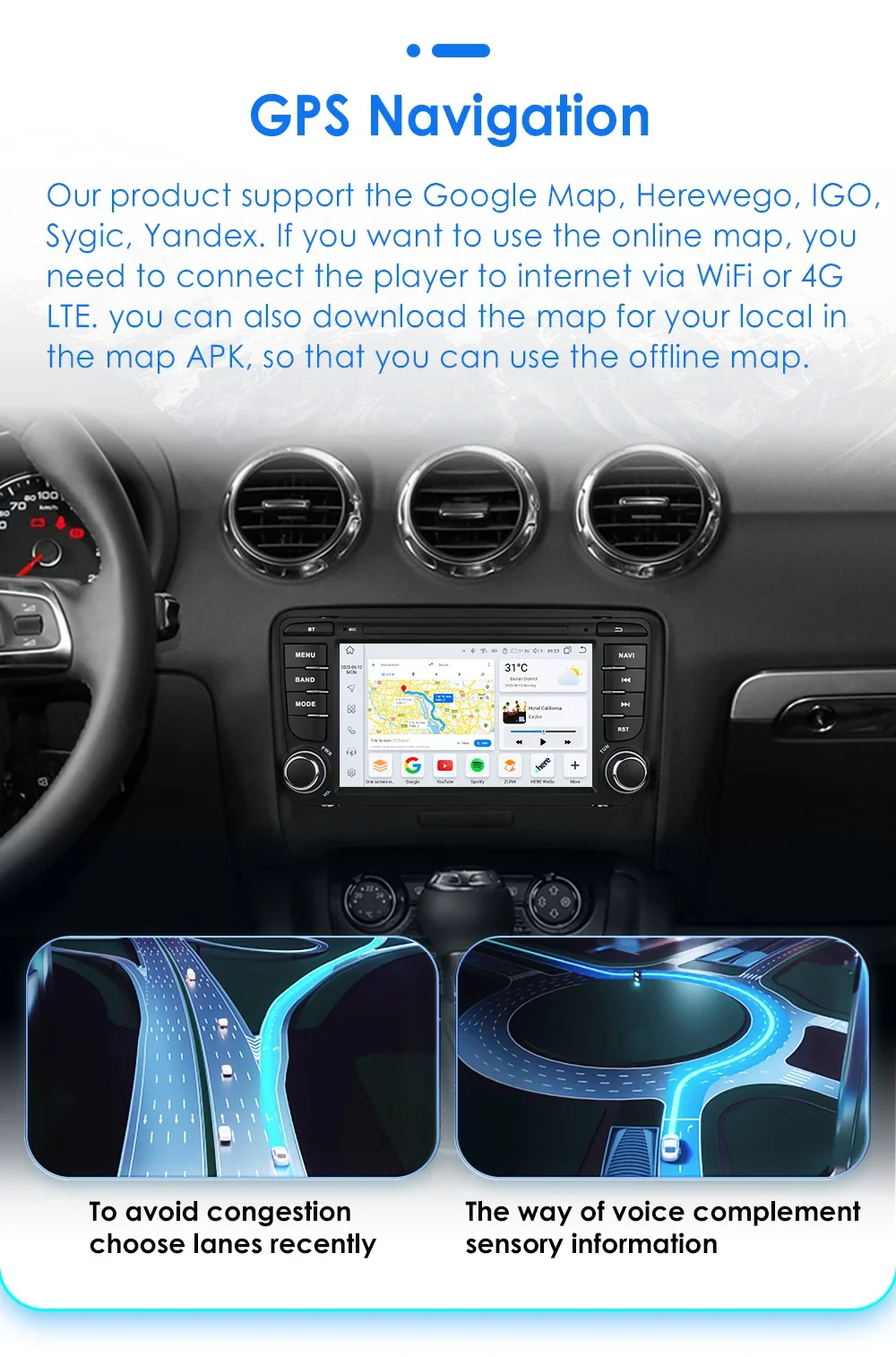 DAB+ Box (da ordinare separatamente): questa radio è dotata di un'APP per il lettore DAB, basta collegarla a un DAB+BOX tramite la porta USB per utilizzare la funzione DAB+, supporta l'ingresso di programmi radio digitali e il funzionamento touch. È possibile utilizzare il touch screen dell'unità per cercare e cambiare programma e questa unità può alimentare il DAB+ BOX collegato. Funzione TPMS (da ordinare separatamente): monitoraggio della pressione dei pneumatici: visualizza in tempo reale la pressione e la temperatura di 4 pneumatici, il sistema di monitoraggio della pressione dei pneumatici avvisa quando la temperatura dei pneumatici è alta o la pressione è bassa. Piccola ventola di raffreddamento: nota: la serie S 8Core è completamente inclusa; gli articoli 4Core non includono la ventola e non supportano questa funzione. Navigazione GPS: supporta Google Maps online e offline, Navitel, Waze, Herewego Per evitare la congestione, scegliere le corsie di recente, il modo in cui la voce integra le informazioni sensoriali. Italiano: Supporta AV-OUT: AV OUT box (da ordinare separatamente) Supporta la connessione USB: Memoria esterna: 3 porte USB fino a 2 TB, questa unità può riprodurre file video e audio dal tuo dispositivo esterno. Schermo diviso: puoi usare 2 app contemporaneamente (come: Navigazione + Musica, Telecamera ADAS + Musica, ecc.) PIP (Picture in Picture): la possibilità di guardare il video in una piccola finestra nella parte superiore dello schermo, l'auto regola le dimensioni. Telecamera DVR ADAS HD 1080P (da ordinare separatamente) -- collega alla porta USB: LDWS (Lane Departure Warning Distance), FCWS (Forward Collision Warning Distance), 1080P (High Definition Car DVR). Sistema di visione posteriore (la telecamera di visione posteriore deve essere ordinata separatamente): un sistema video per auto che supporta una telecamera di backup mostra i punti ciechi problematici su un monitor, consentendo al conducente di vedere pericoli come animali domestici, bambini che giocano o cassette della posta, mentre fa retromarcia. Controllo del volante: puoi cambiare la musica e il volume più facilmente tramite il volante e rendere la tua guida più sicura. Display informativo originale dell'auto: serie S Impostazioni tipo Canbus: Fabbrica - 8888 (password) - Modello auto - LZ (Luzheng) - Audi - TT - 06-14 - ok. Per la serie HC il codice è 000000 Il suo schema elettrico di ogni pin dettaglia i fili del diagramma elettrico posteriore della radio: Dimensioni del prodotto: si prega di confrontare le dimensioni con quelle della radio originale prima di fare offerte, se le dimensioni sono diverse e non possono essere installate. Accessori standard: spediti insieme all'unità principale (ma si prega di prestare attenzione alle parole rosse dell'accessorio se è possibile ottenerlo o meno, a seconda dell'opzione dell'articolo che si sceglie di acquistare) Immagini dei pin del connettore: