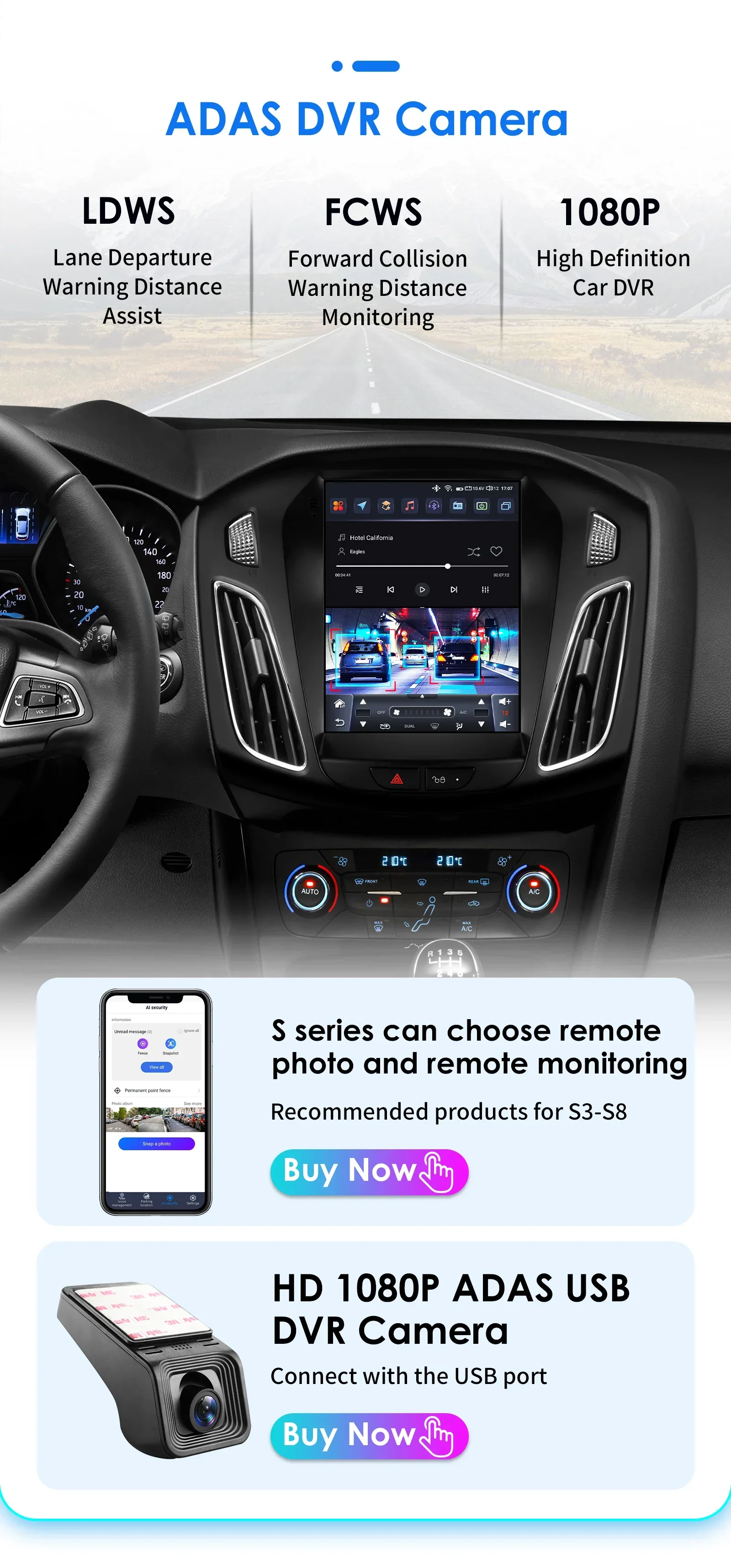 Telecamera DVR ADAS HD 1080P (da ordinare separatamente): da collegare alla porta USB: LDWS (Lane Departure Warning Distance), FCWS (Forward Collision Warning Distance), 1080P (High Definition Car DVR).