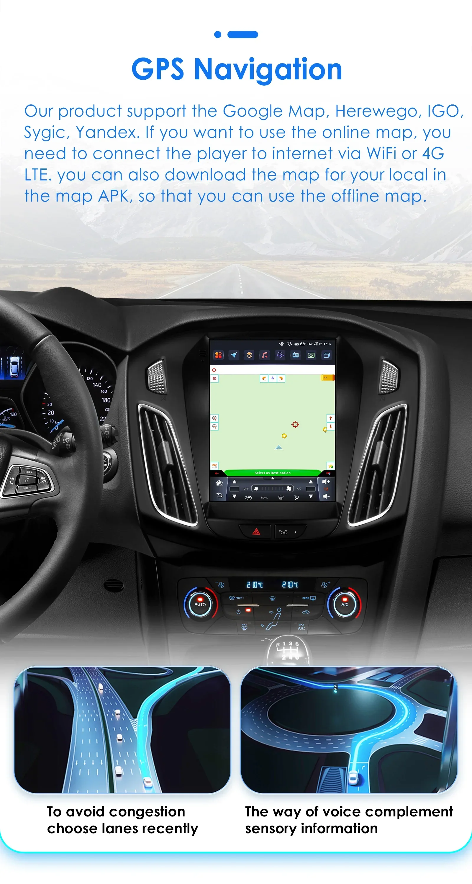 Navigazione GPS: supporta Google Maps online e offline, Navitel, Waze, Herewego Per evitare la congestione, scegli le corsie di recente, il modo in cui la voce completa le informazioni sensoriali.