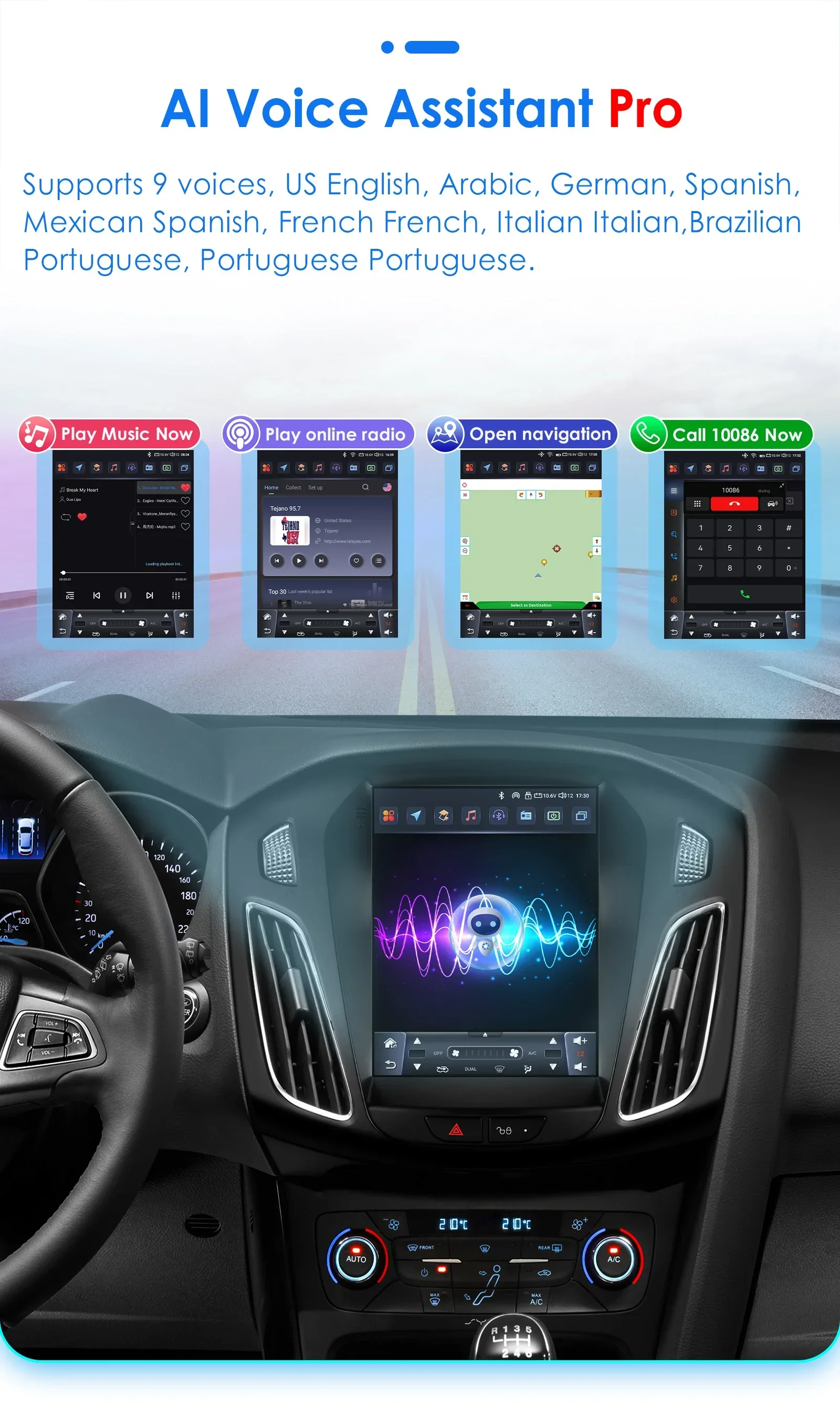 Ford Focus 3 MK3 2011-2019 Tesla Style 9,7" Android 14 Carplay Android auto wireless wifi bt gps 4g AUTMWCH0