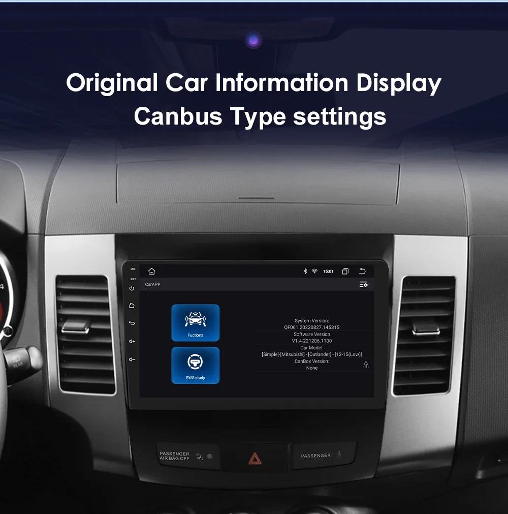 Impostazioni tipo Canbus: Fabbrica - 8888 (password della serie S) - Modello auto - Semplice - Mitsubishi - Outlander - 12-15 (basso) - OK.