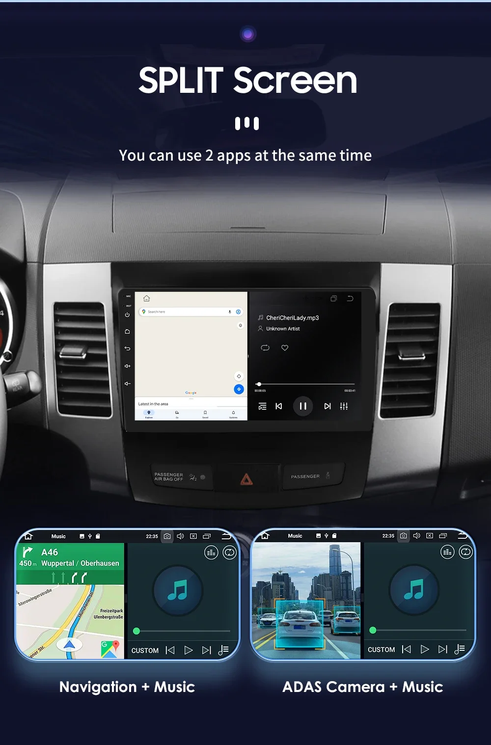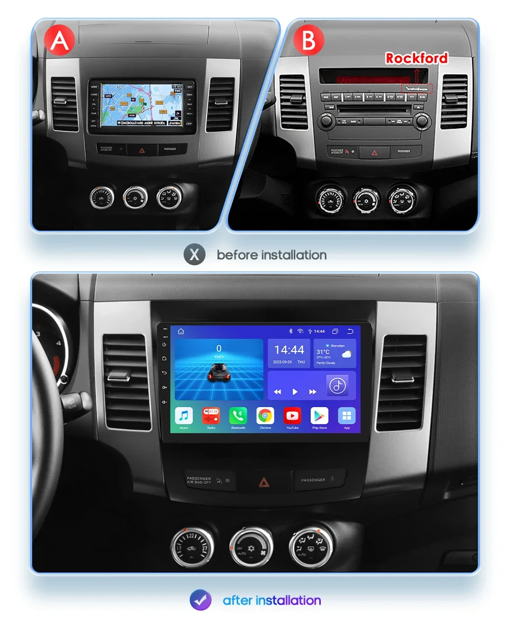 Peugeot 4007 Mitsubishi Outlander 2 Citroen C-Crosser 9" Android 14 Carplay Android auto wireless wifi bt gps 4g AUTMS5Y3