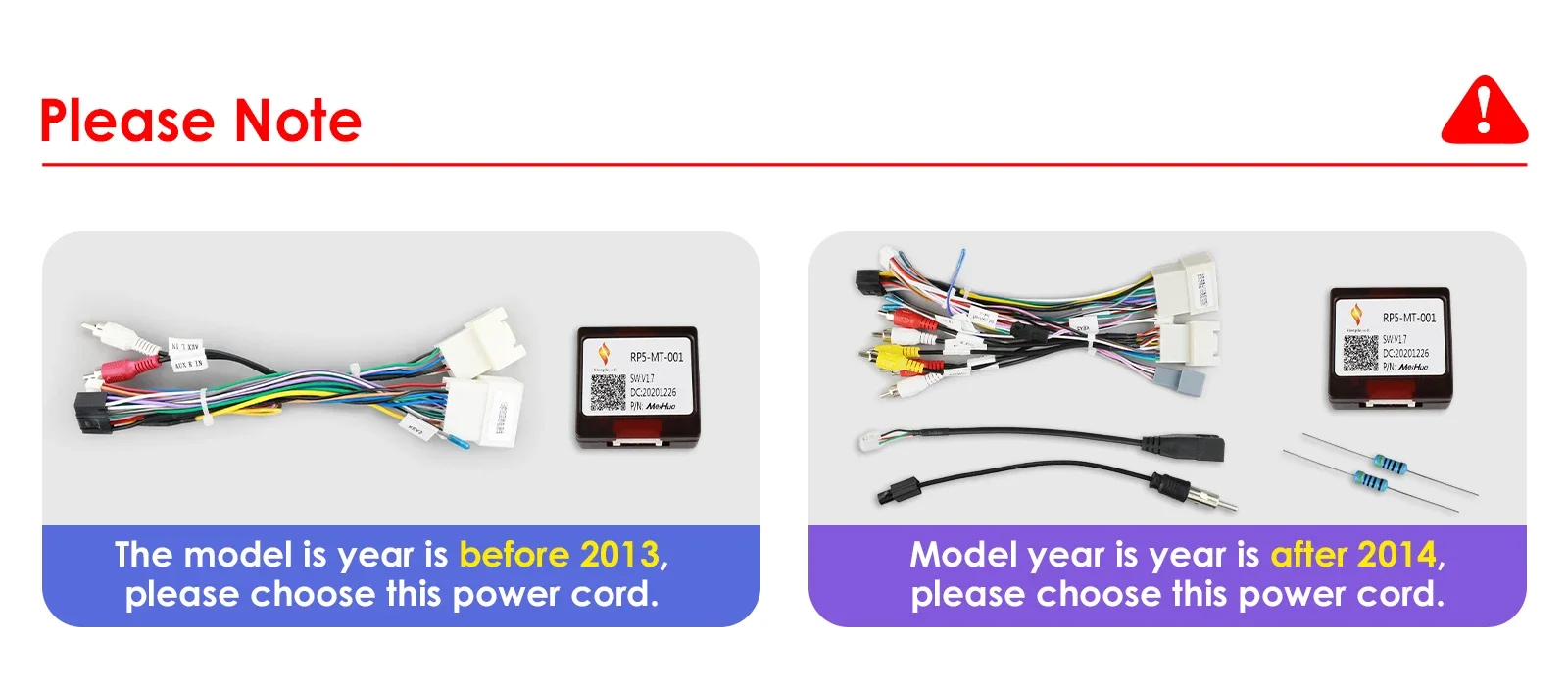 🔵 Auto prodotte prima del 2013 → usare il cablaggio mostrato a sinistra (più semplice, con meno connettori RCA).