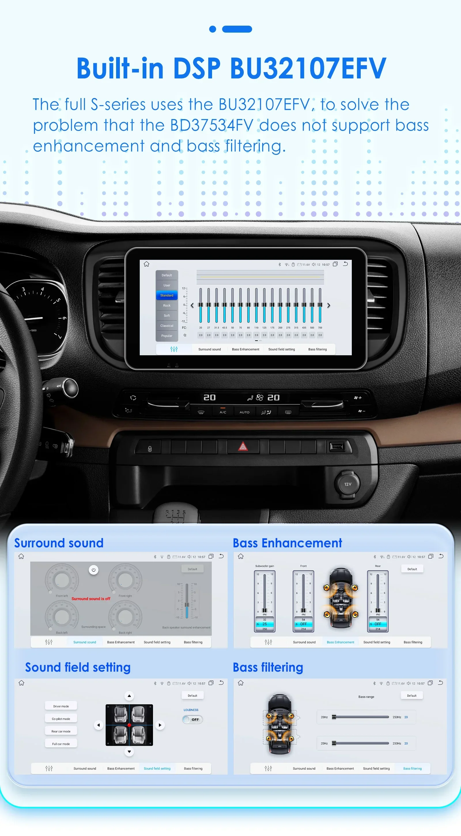 DSP integrato BU32107EFV: utilizziamo i chip DSP BU32107EFV e BD37534FV in diverse configurazioni di prodotto. Per le differenze specifiche, fare riferimento alla tabella delle configurazioni del prodotto.