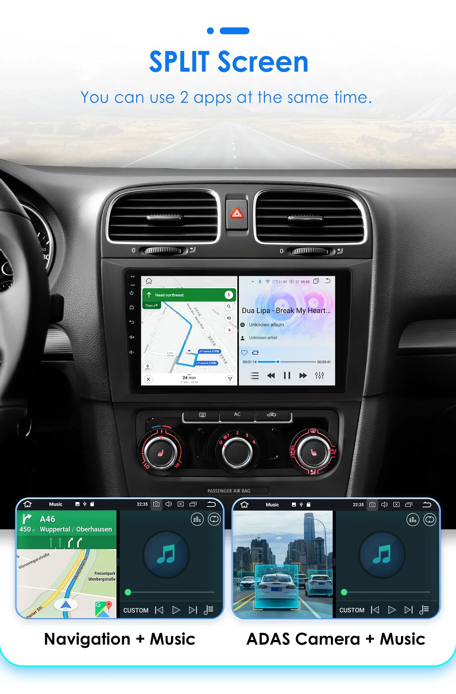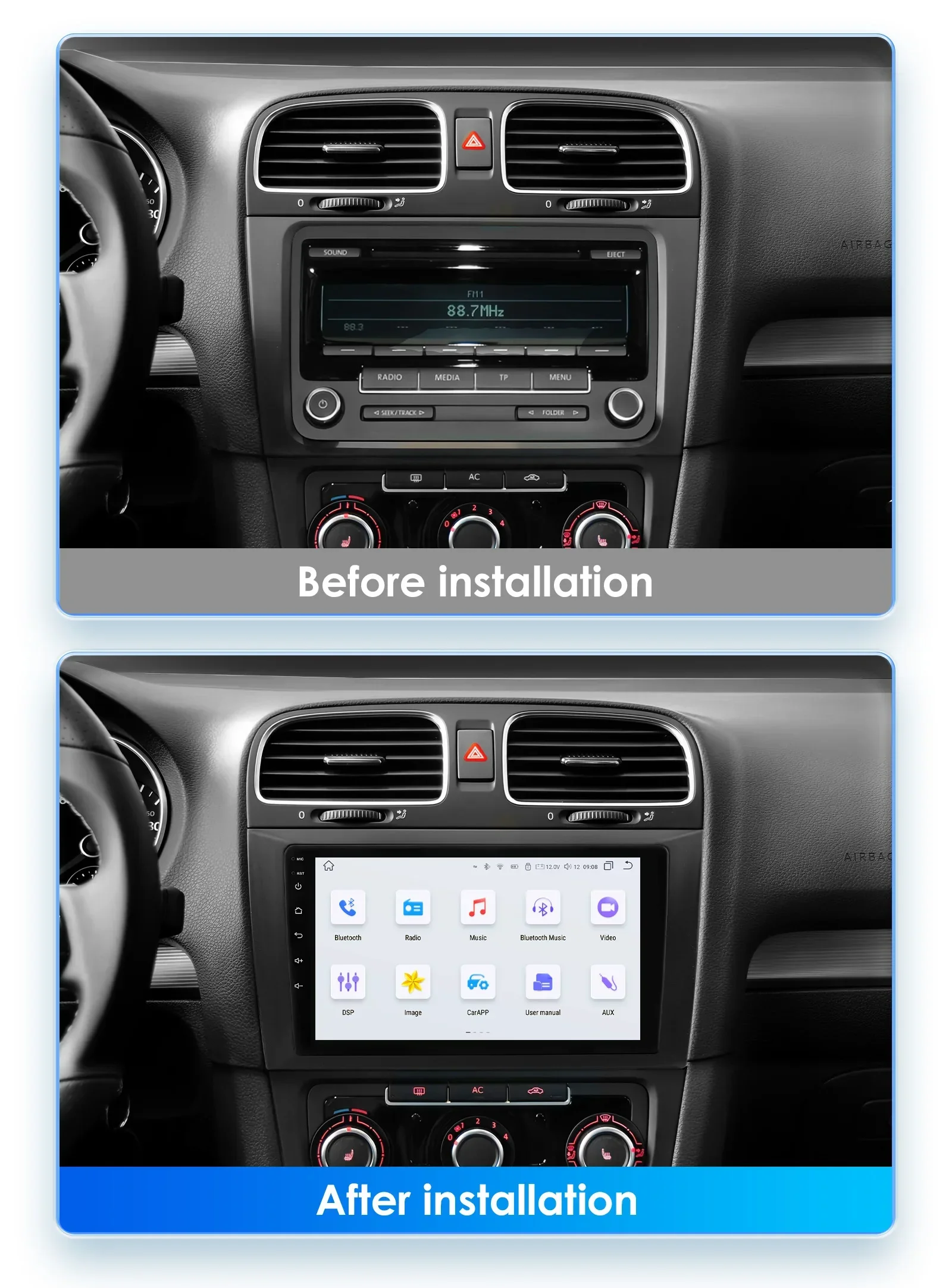 Volkswagen Golf 6 2008 - 2016 9" Android 14 Carplay Android auto wireless wifi bt gps 4g AUTM2L0X