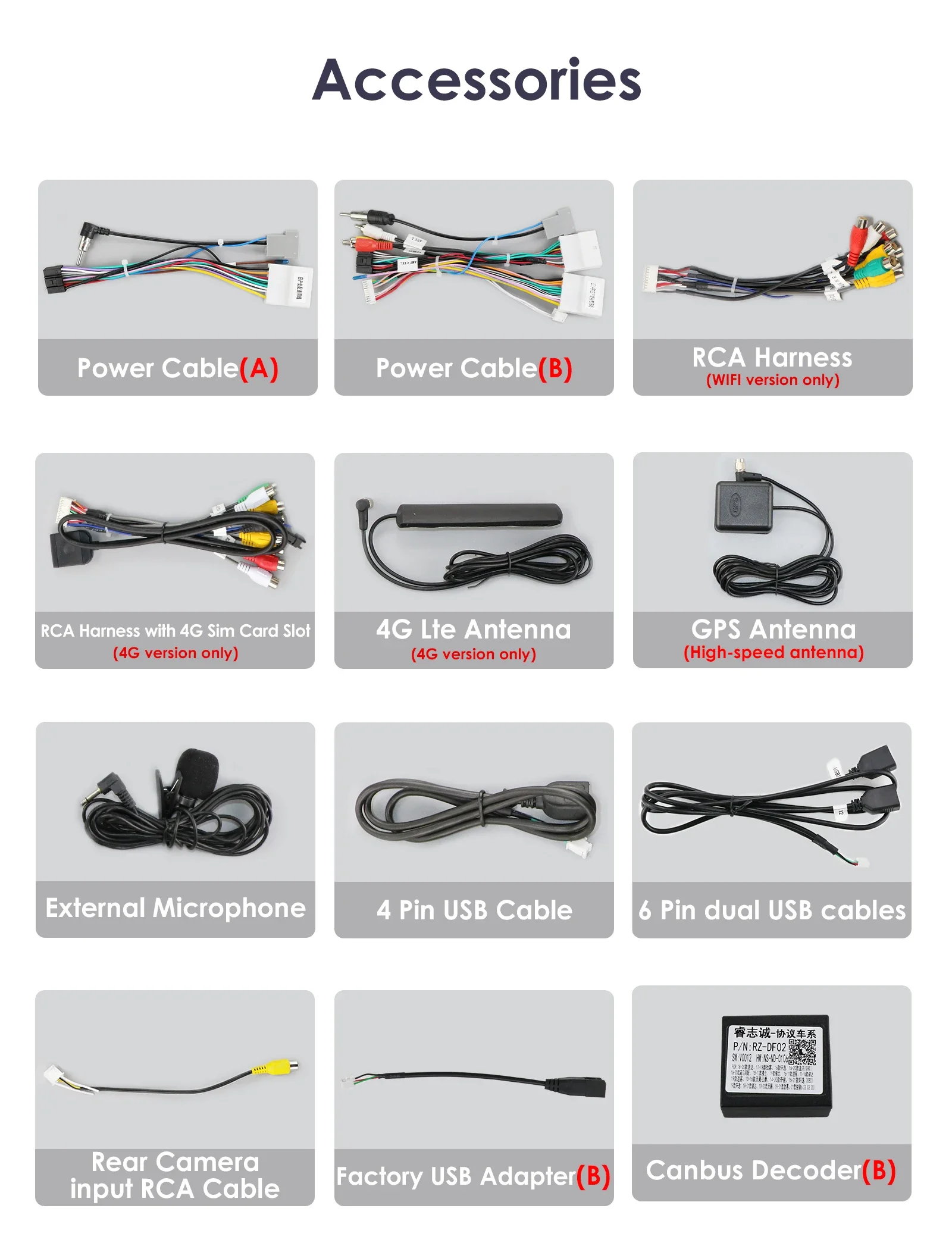 DAB+ Box (da ordinare separatamente): questa radio è dotata di un'APP per il lettore DAB, basta collegarla a un DAB+BOX tramite la porta USB per utilizzare la funzione DAB+, supporta l'ingresso di programmi radio digitali e il funzionamento touch. È possibile utilizzare il touch screen dell'unità per cercare e cambiare programma e questa unità può alimentare il DAB+ BOX collegato.