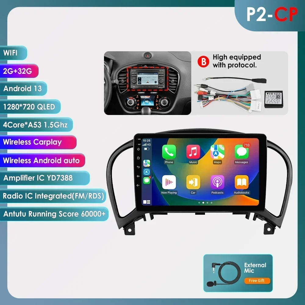 Nissan Juke YF15 2010-2014 9" Android 14 Carplay Android auto wireless wifi bt gps 4g AUTMKJSN