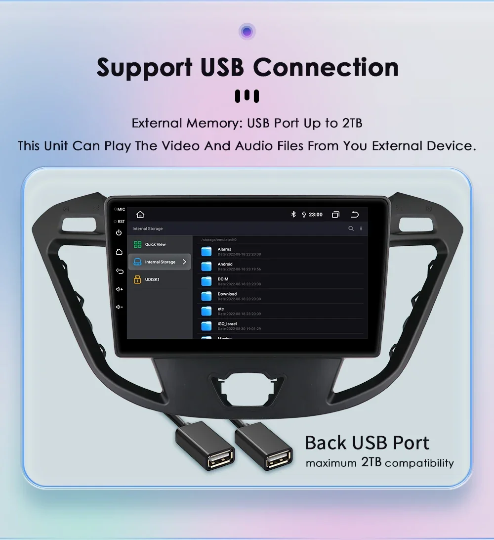 Ford Transit Tourneo Custom 2013-2021 9" Android 14 Carplay Android auto wireless wifi bt gps 4g AUTMCWA3