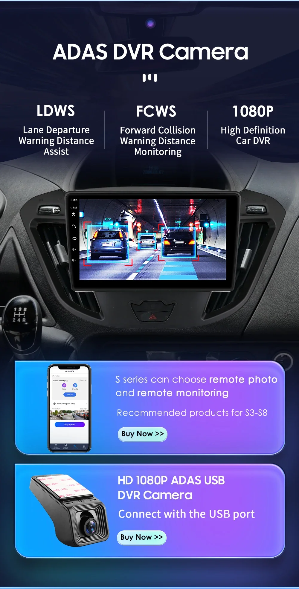Telecamera DVR ADAS HD 1080P (da ordinare separatamente) -- collega alla porta USB: LDWS (Lane Departure Warning Distance), FCWS (Forward Collision Warning Distance), 1080P (High Definition Car DVR).