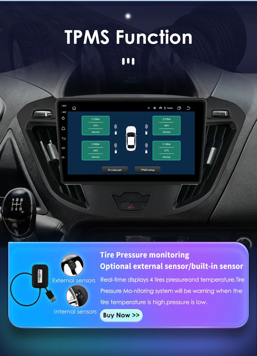 Funzione TPMS (da ordinare separatamente): monitoraggio della pressione dei pneumatici: visualizza in tempo reale la pressione e la temperatura di 4 pneumatici, il sistema di monitoraggio della pressione dei pneumatici avvisa quando la temperatura dei pneumatici è alta o la pressione è bassa.