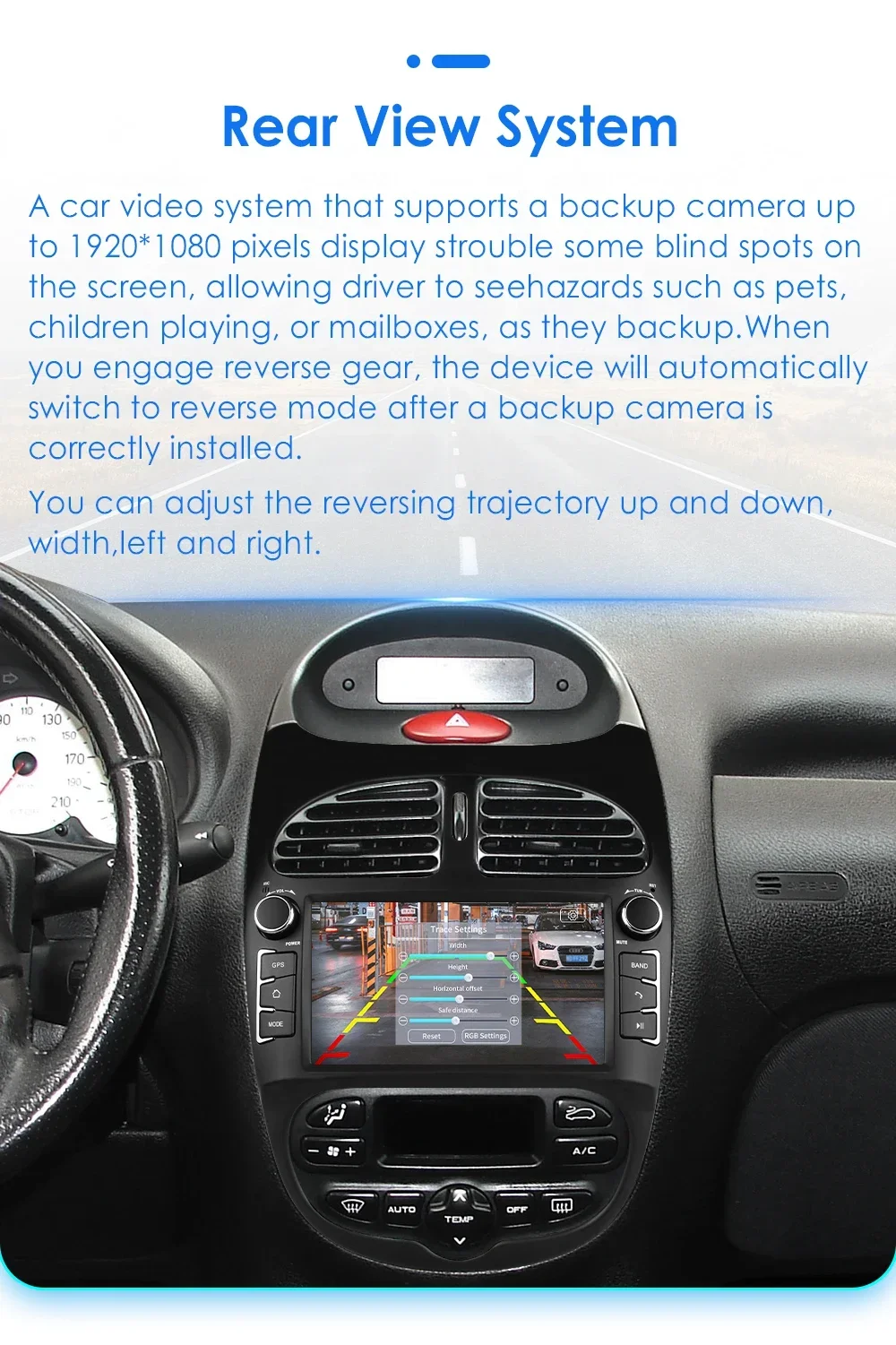 Sistema di visione posteriore (la telecamera di visione posteriore deve essere ordinata separatamente): un sistema video per auto che supporta una telecamera di backup mostra i punti ciechi problematici su un monitor, consentendo al conducente di vedere pericoli come animali domestici, bambini che giocano o cassette della posta, mentre fa retromarcia.