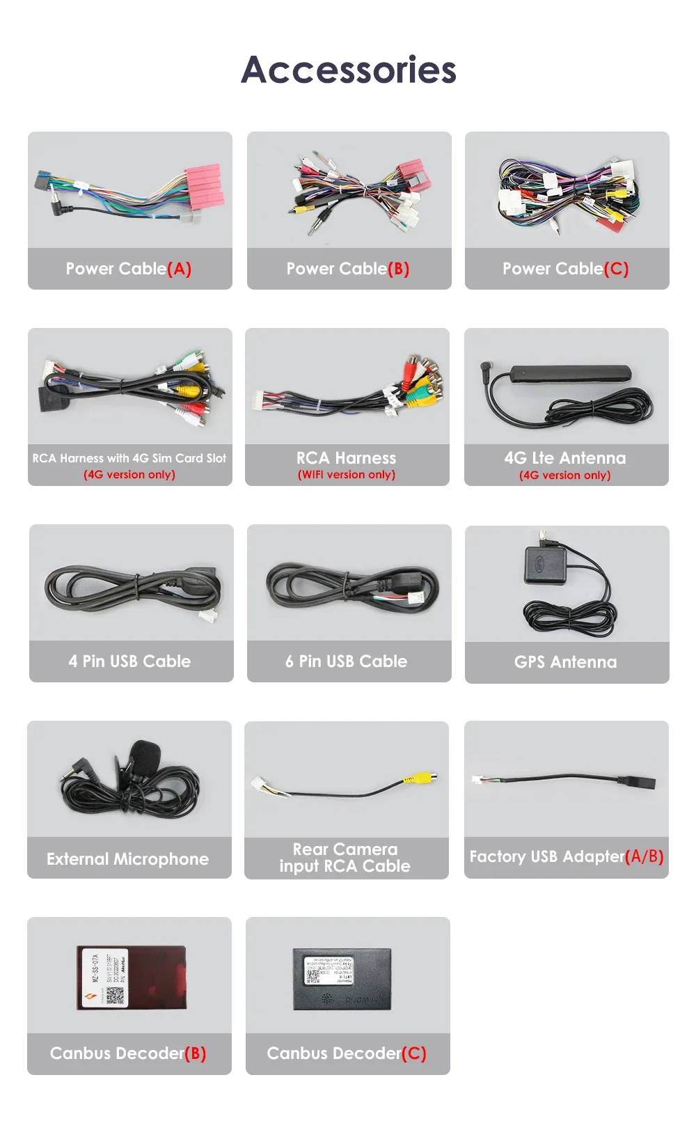 Accessori standard: forniti insieme all'unità principale (ma si prega di prestare attenzione alle parole rosse dell'accessorio se è possibile ottenerlo o meno, a seconda dell'opzione dell'articolo che si sceglie di acquistare)