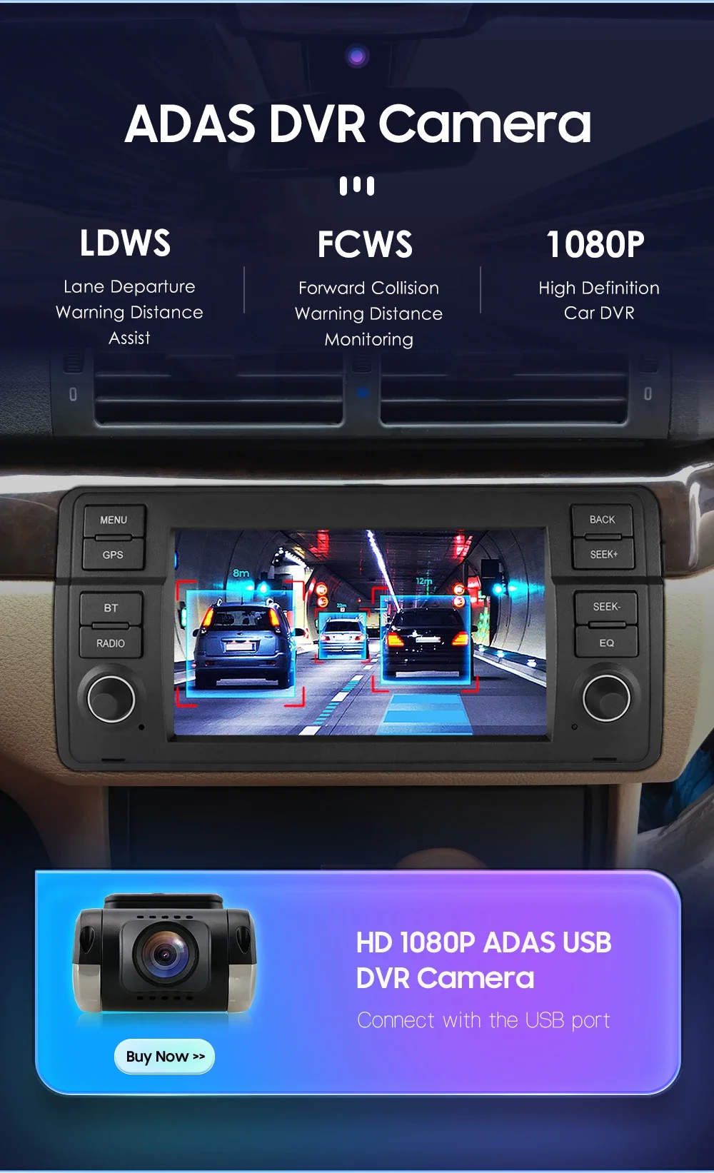 LDWS(Lane Departure Warning Distance),FCWS(Forward Collision Warning Distance), 1080P(High Definition Car DVR).