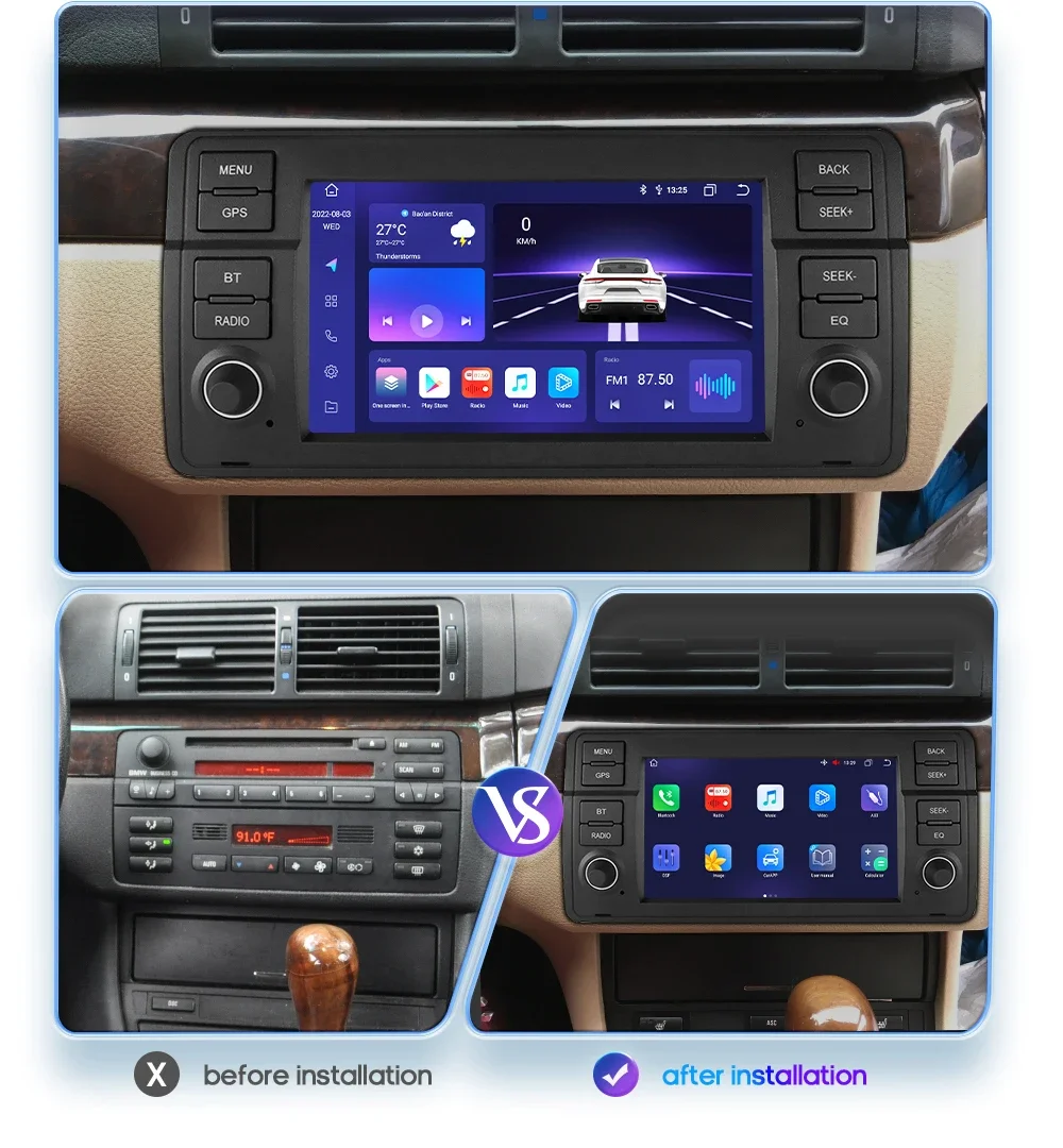 BMW E46 M3 Rover 75 Coupe 318/320/325/330/335 7" Android 14 Carplay Android auto wireless wifi bt gps 4g AUTMV3CK