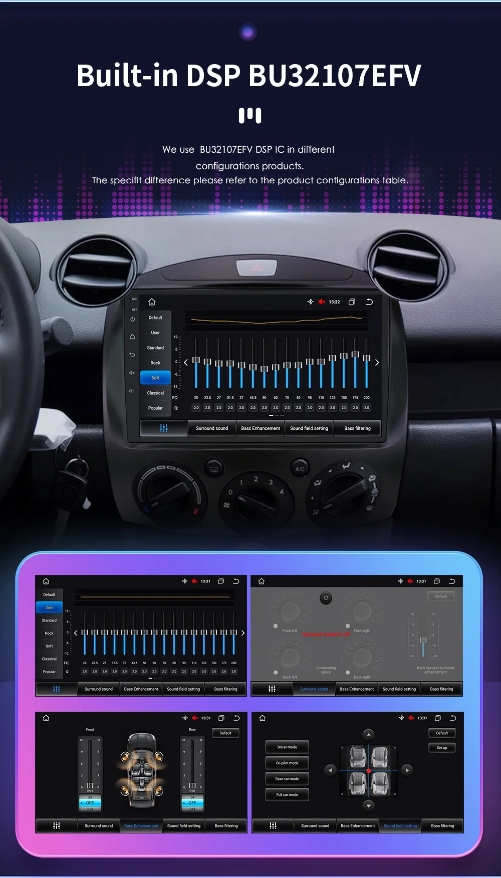 DSP integrato BU32107EFV: utilizziamo BU32107EFV e BD37534FV DSP IC in diverse configurazioni di prodotti. Per le differenze specifiche, fare riferimento alla tabella delle configurazioni del prodotto.