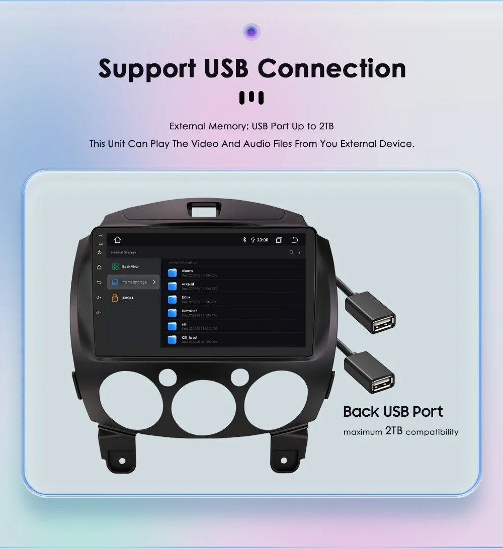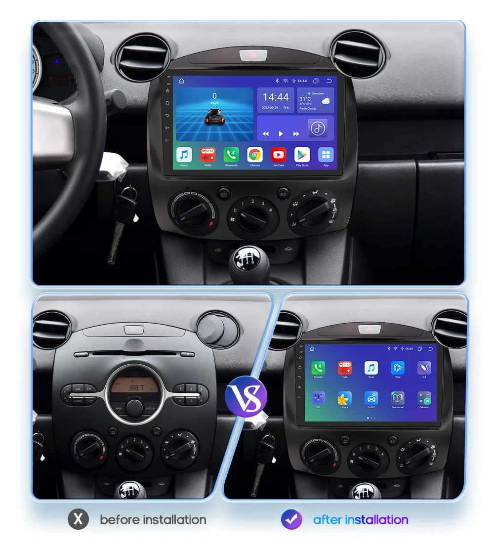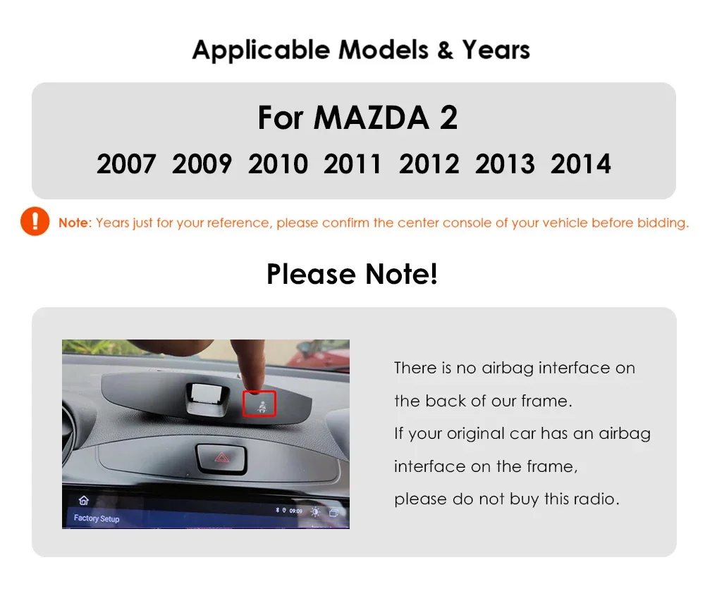 MAZDA 2 Mazda2 2007 - 2014 9" Android 14 Carplay Android auto wireless wifi bt gps 4g AUTMZVDM2