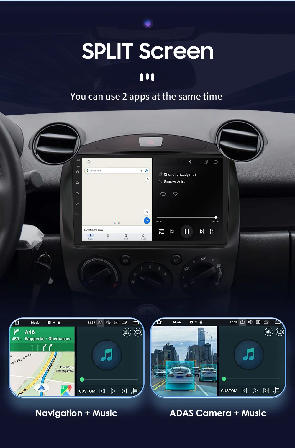 Schermo diviso: puoi usare 2 app contemporaneamente (come: Navigazione + Musica, Telecamera ADAS + Musica, ecc.)