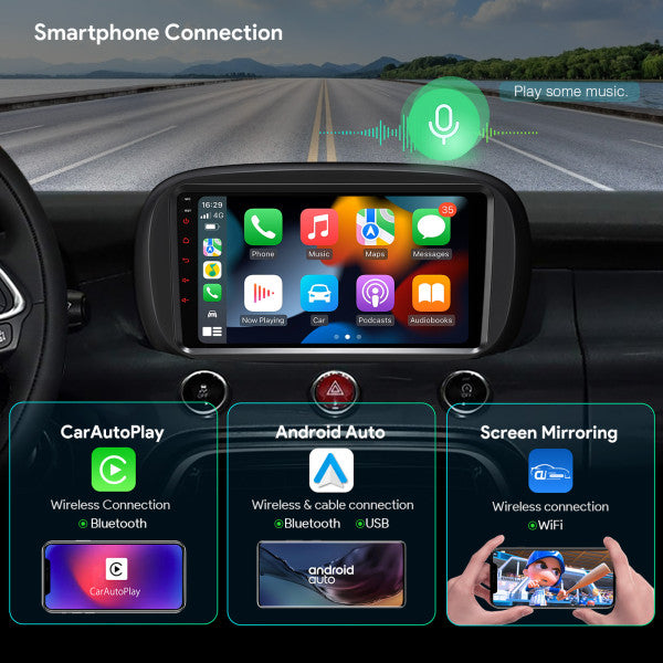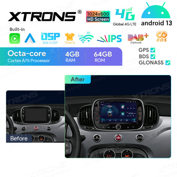 Fiat 500 2016 -2020 7" Android 13 Carplay Android auto wireless wifi bt gps 4g IA72500FLS