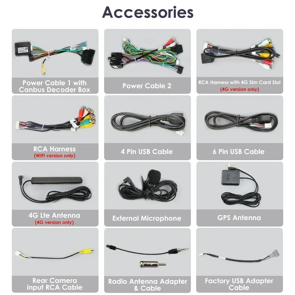 Standard Accessories: which ship with the head unit together(but please pay attension to the red words of accessory whether can get or not which depends on the item option you choose to buy it)