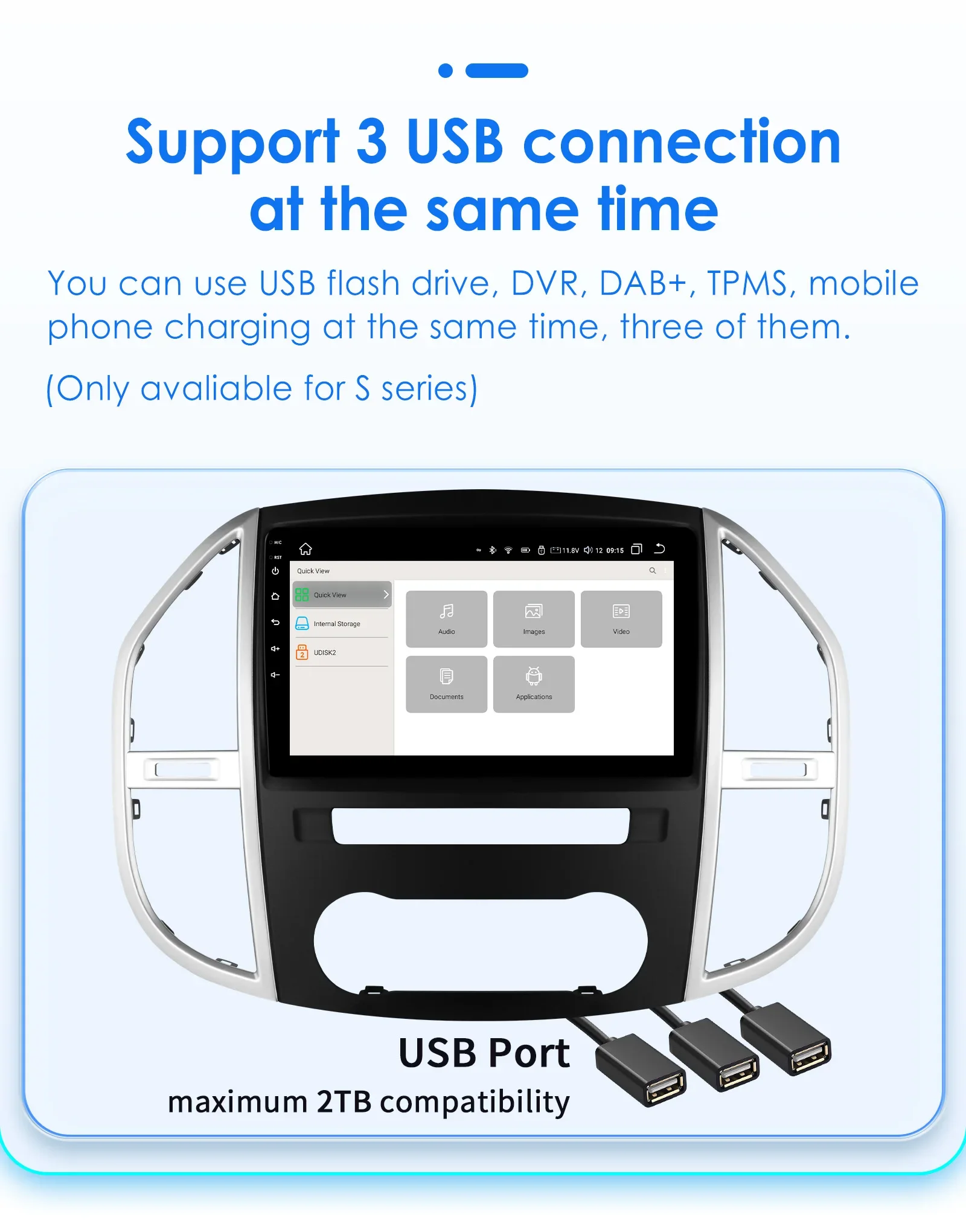 Mercedes Benz Vito W447 2014 - 2021 9" /10,33" Android 14 Carplay Android auto wireless wifi bt gps 4g AUTMCTCJ