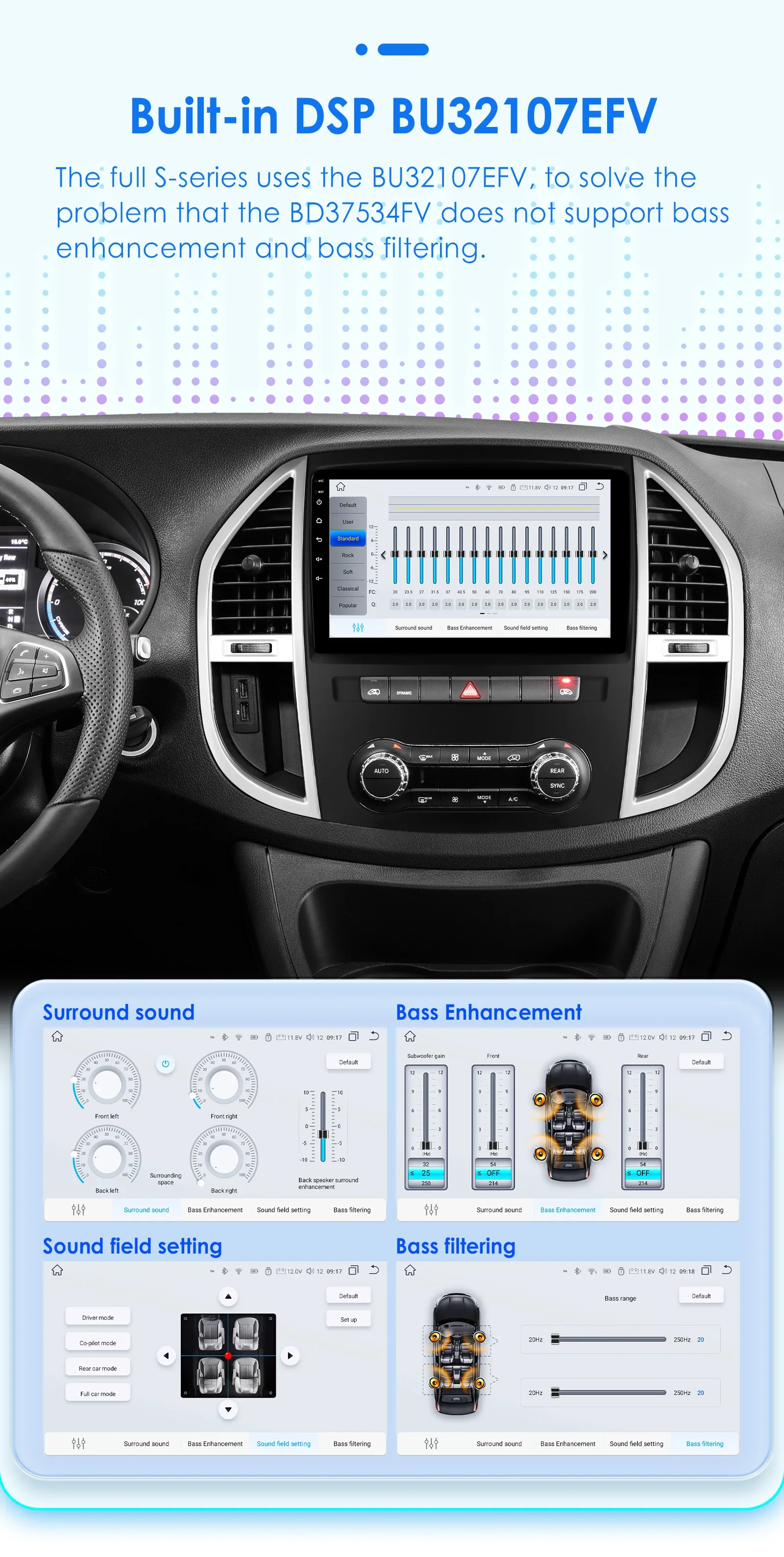 Built-in DSP BU32107EFV: We use BU32107EFV and BD37534FV DSP IC in different configurations products. The specifit difference please refer to the product configurations table.