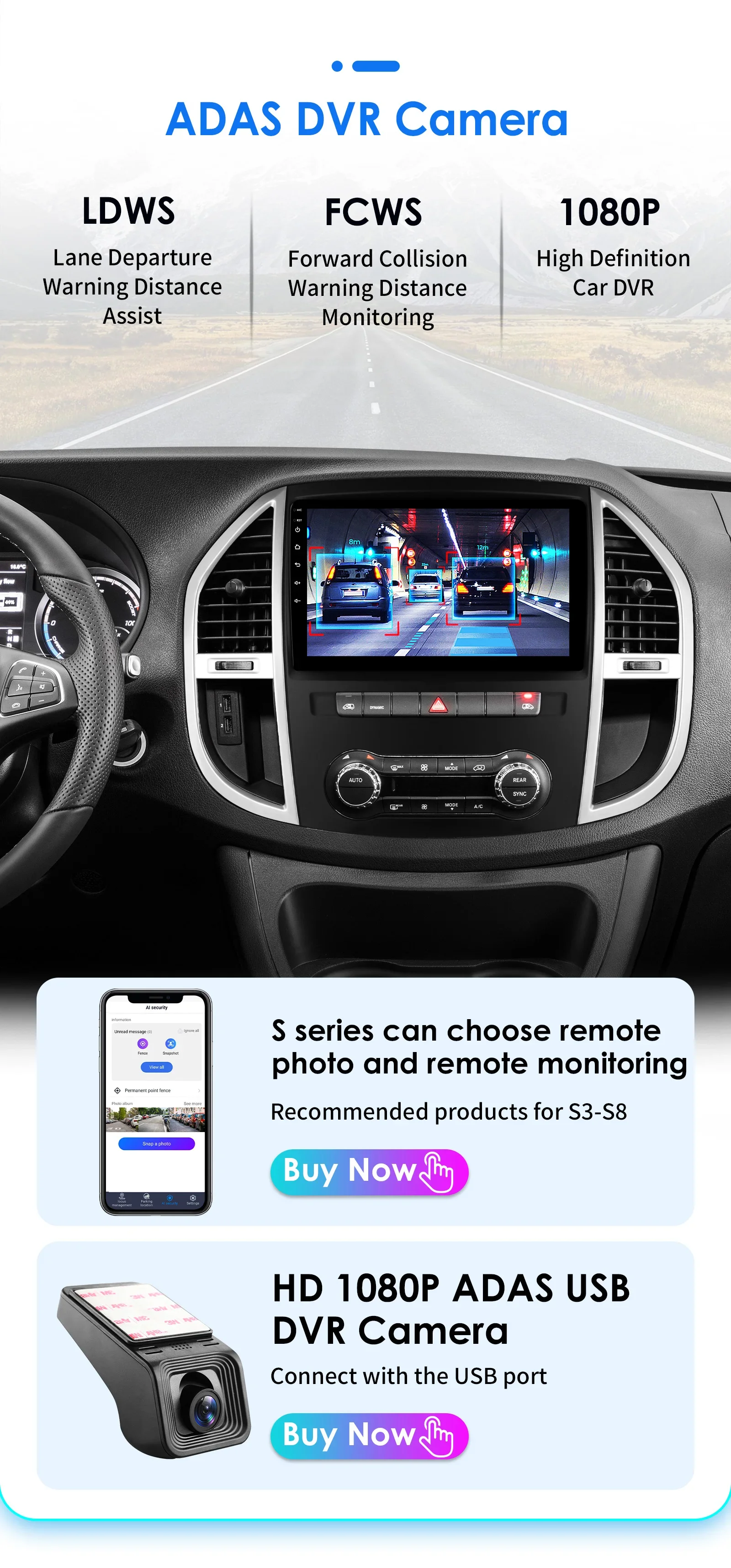 Telecamera DVR ADAS HD 1080P (da ordinare separatamente): da collegare alla porta USB: LDWS (Lane Departure Warning Distance), FCWS (Forward Collision Warning Distance), 1080P (High Definition Car DVR).