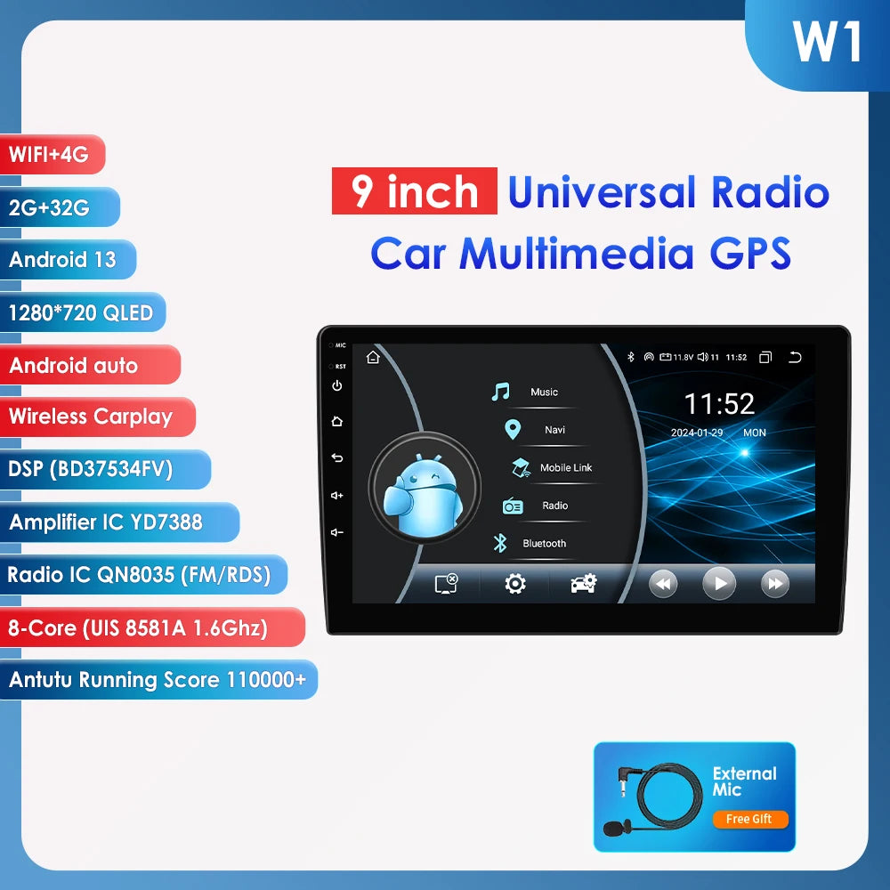 9-inch Universal Android Car Radio Headunit Intelligent System 4G WiFI BT Auto CarPlay GPS Navigation UI7862