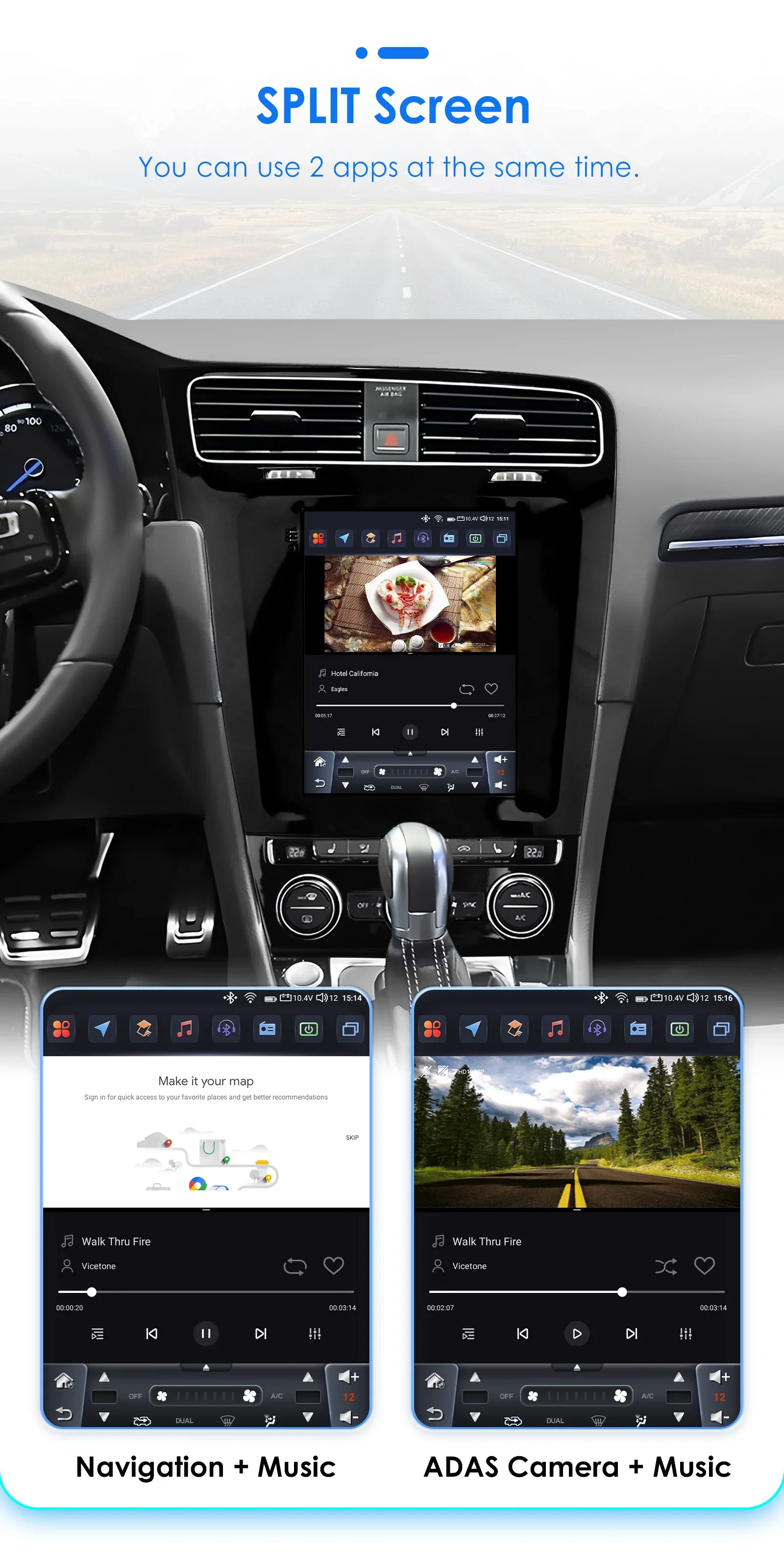 Support Carplay / Android auto: Phone / Music / Maps / Podcasts Make your journey easier and more fun. support wireless carplay,wired android auto,wireless android auto(which needs to set its cell phone wifi hotspot's AP Band as 5 Ghz band).