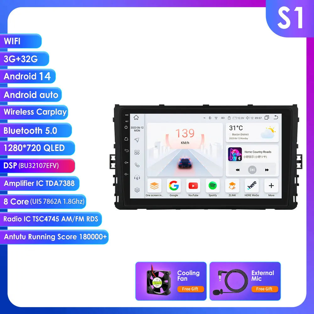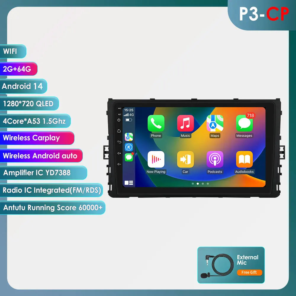 VW MQB Polo Plus T-Cross Zoals T-Kruis T-Roc Tharu Sagitar 9" Android 14 Carplay Android auto wireless wifi bt gps 4g AUTMLMGF