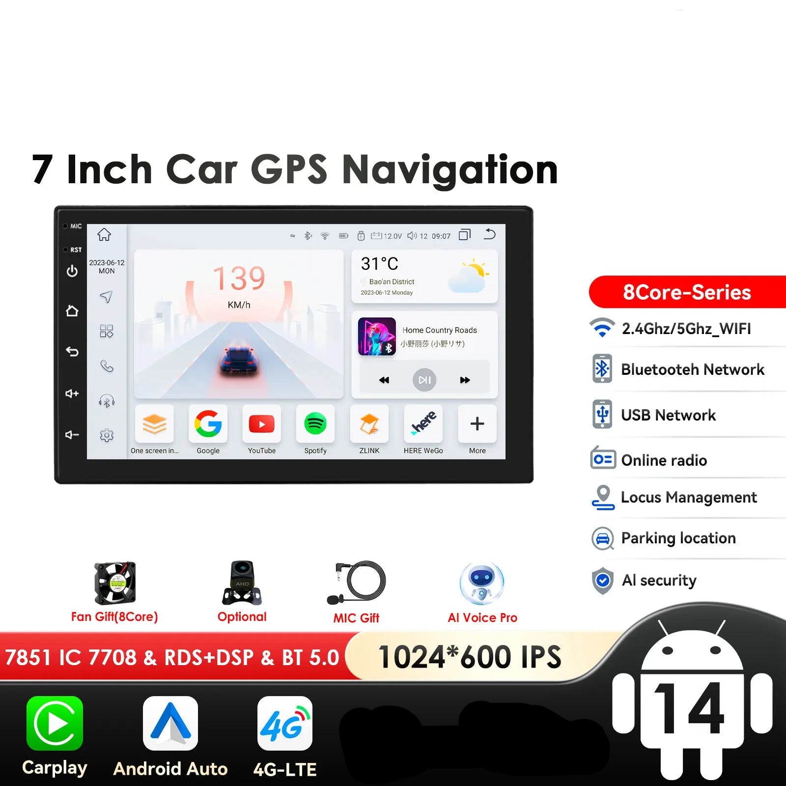 Universale 2 DIN 7" Android 14 Carplay Android auto wireless wifi bt gps 4g AUTMIYLG