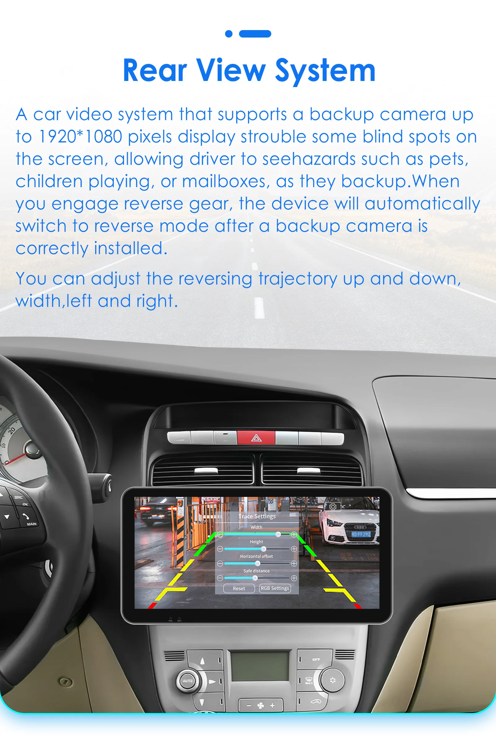 Rear View System(Rear View Camera needs to order separately): A car video system that supports a backup camera displays troublesome blind spots on a monitor , allowing a driver to see hazard such as pets ,children playing ,or mailboxes ,as they backup.