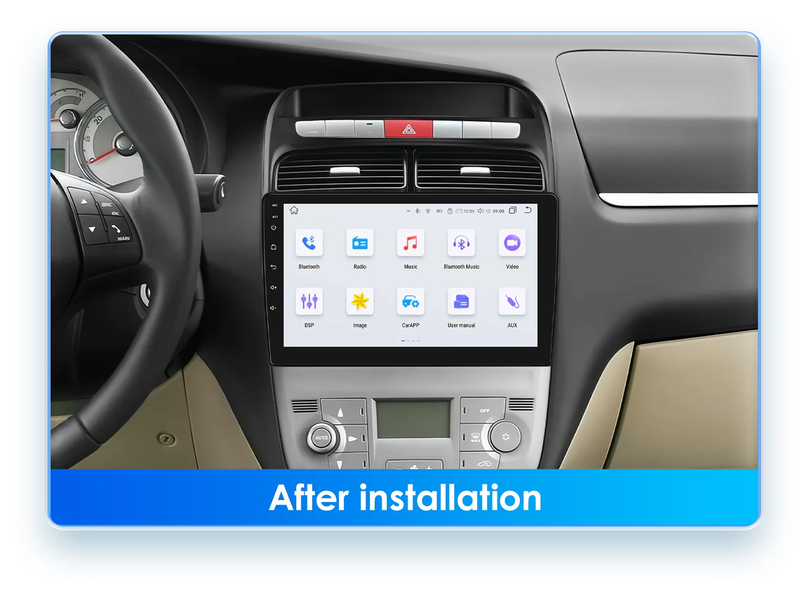 Fiat Grande Punto Linea 2007 - 2012 9" Android 14 Carplay Android auto wireless wifi bt gps 4g AUTMV7JC