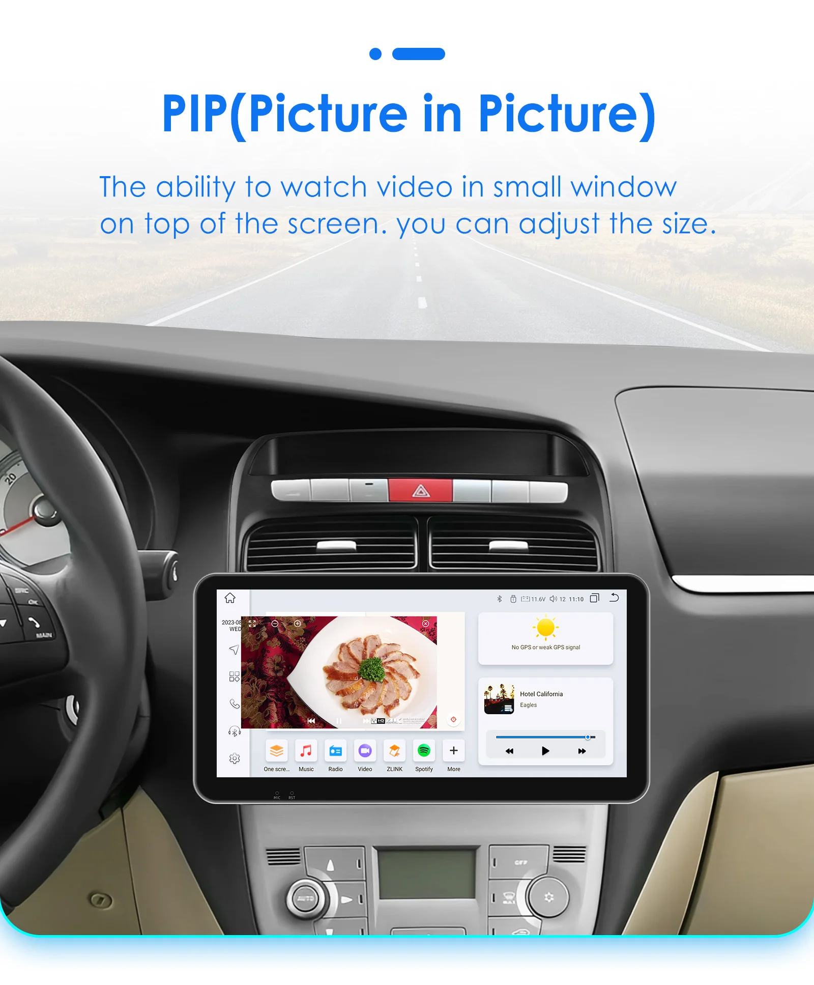 PIP(Picture in Picture): the ability to watch video in small window on top of the screen, you car adjust the size.