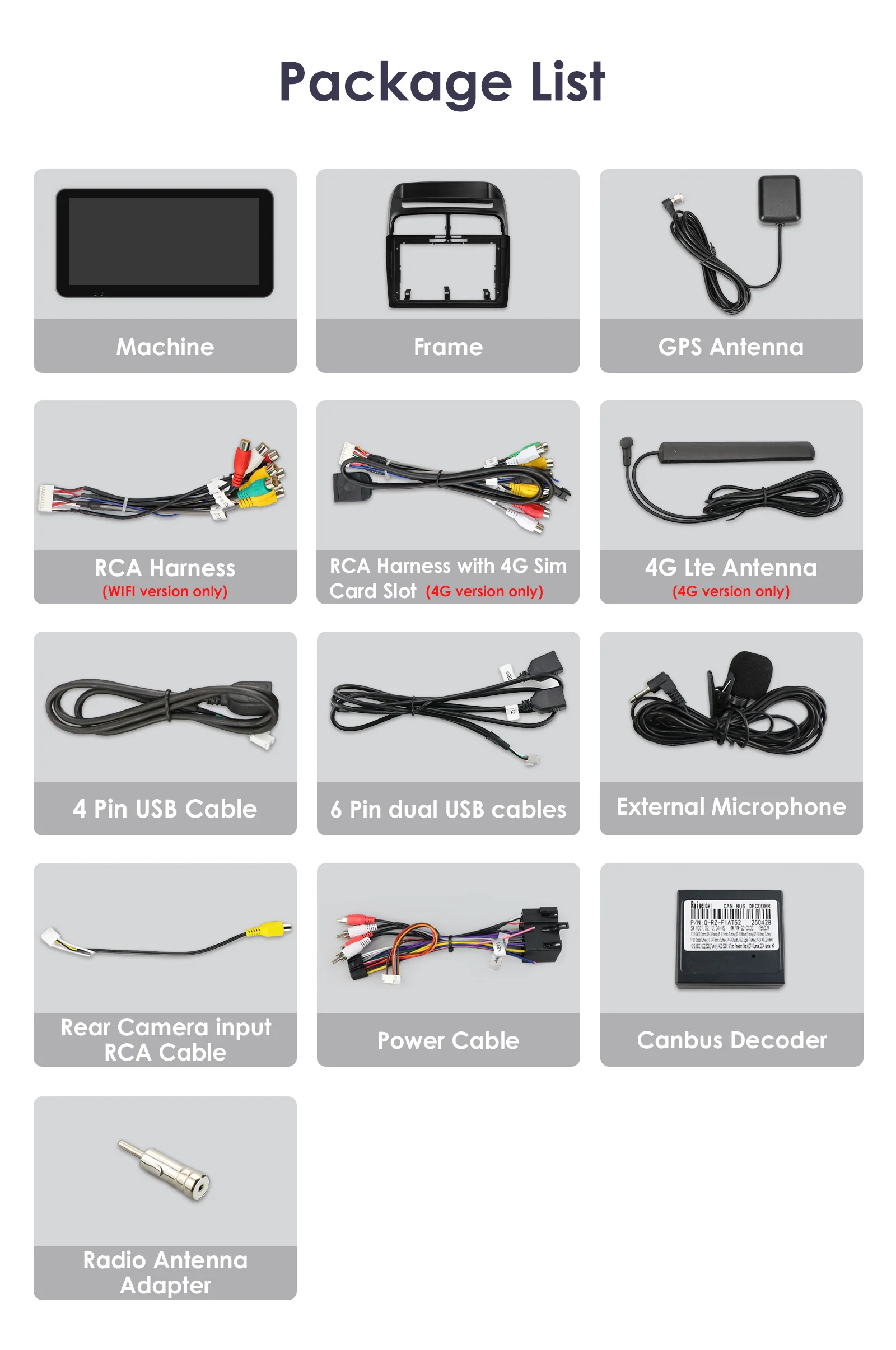 Built-in 4G Network: Please enter the SIM card before turn on the device. Include the 4G card slot, and the 4G antenna!