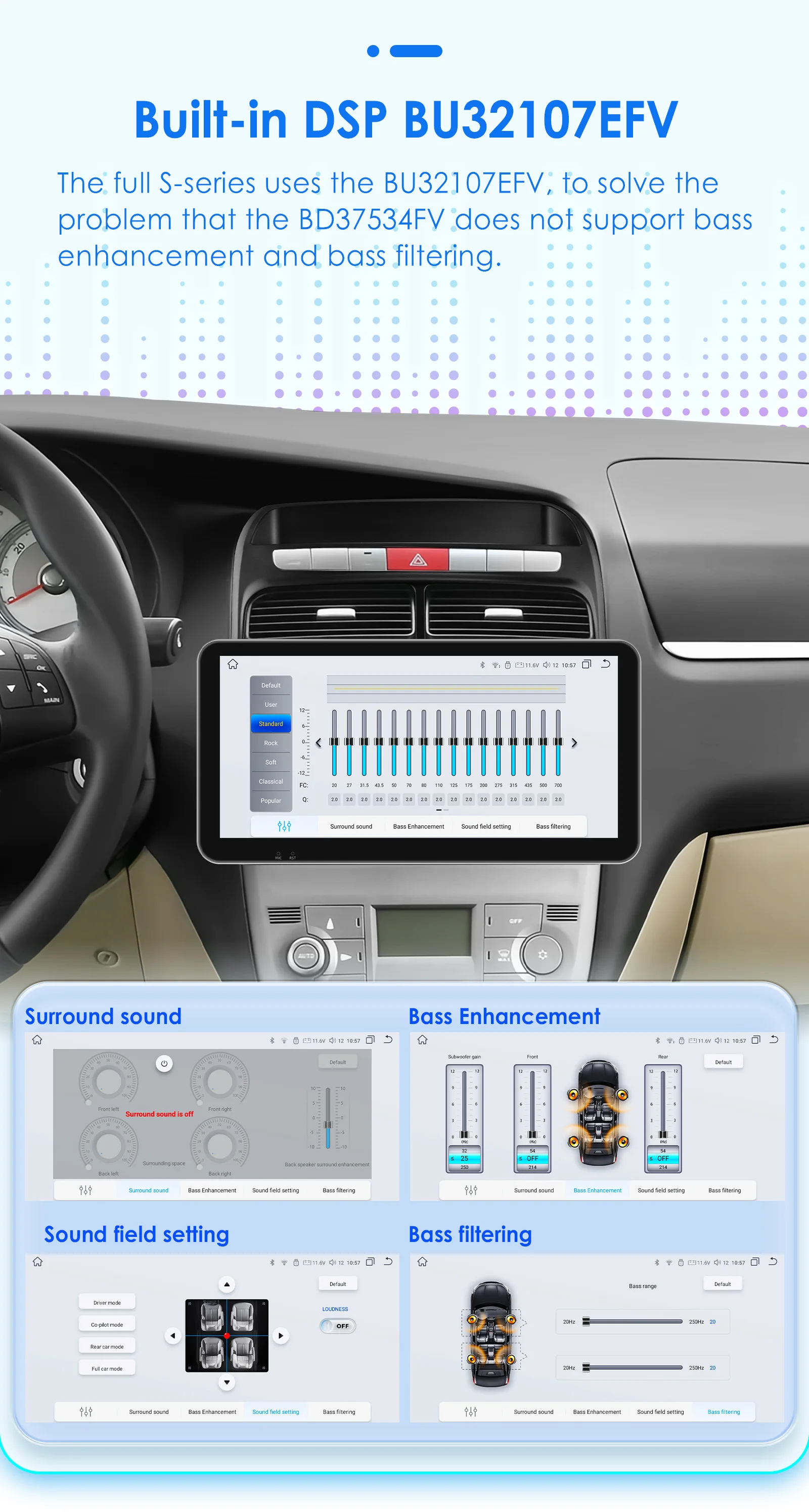 DSP integrato BU32107EFV: utilizziamo i chip DSP BU32107EFV e BD37534FV in diverse configurazioni di prodotto. Per le differenze specifiche, fare riferimento alla tabella delle configurazioni del prodotto.