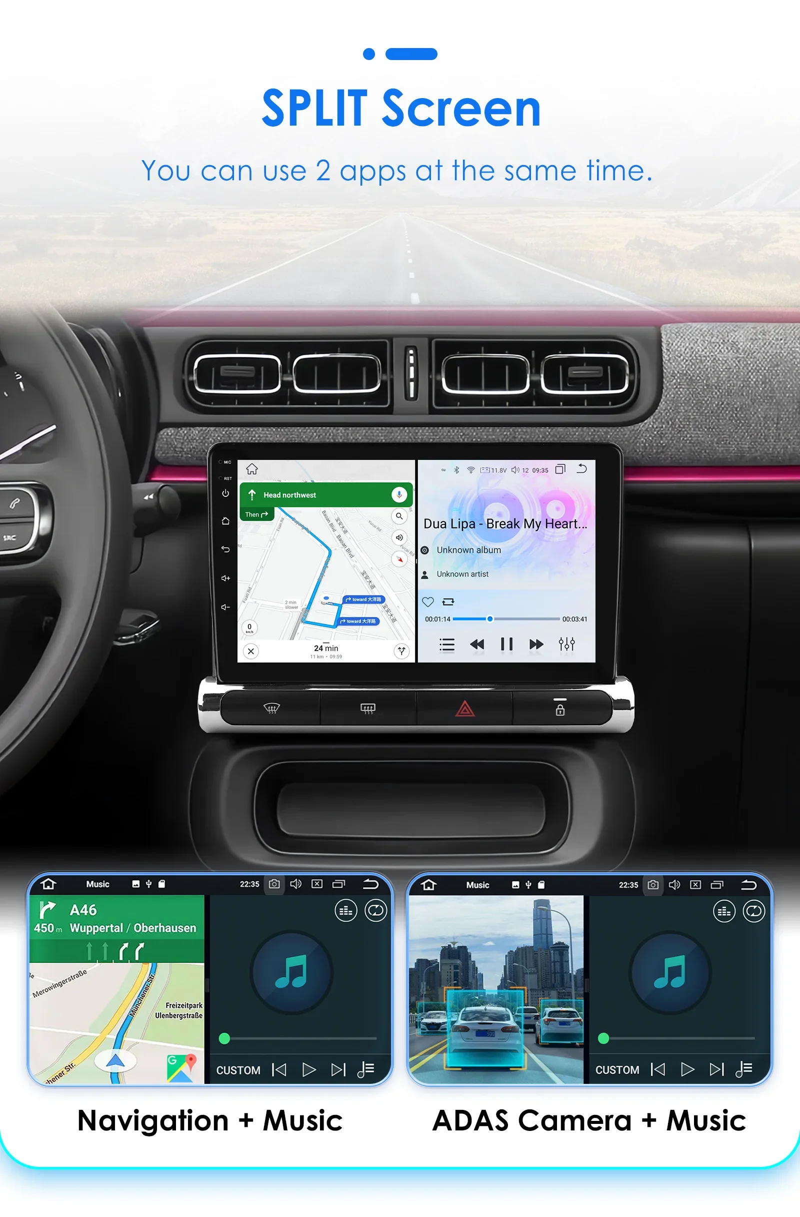Schermo diviso: puoi usare 2 app contemporaneamente (come: Navigazione + Musica, Telecamera ADAS + Musica, ecc.)