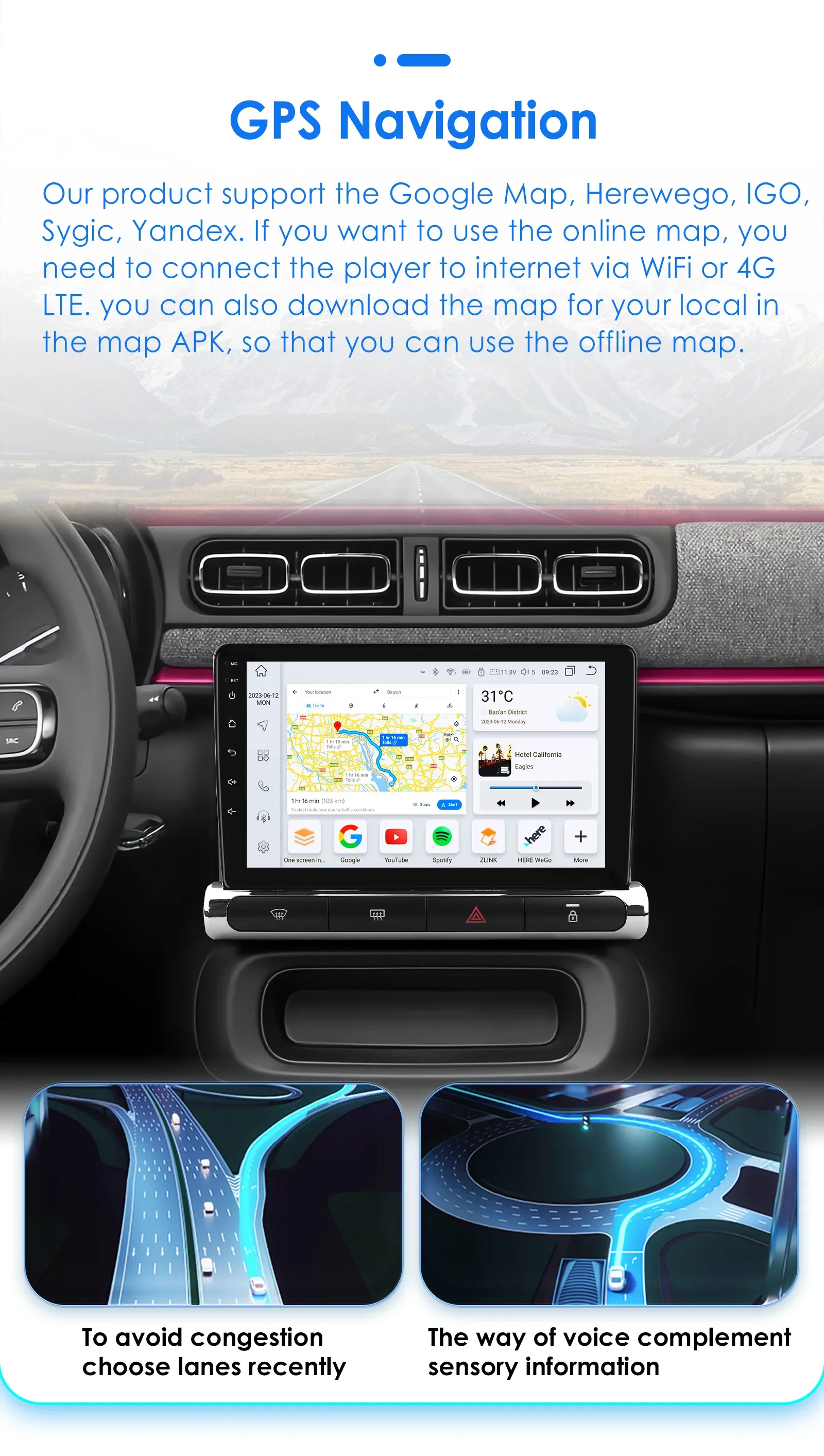Navigazione GPS: supporta Google Maps online e offline, Navitel, Waze, Herewego Per evitare la congestione, scegliere le corsie di recente, il modo in cui la voce integra le informazioni sensoriali.