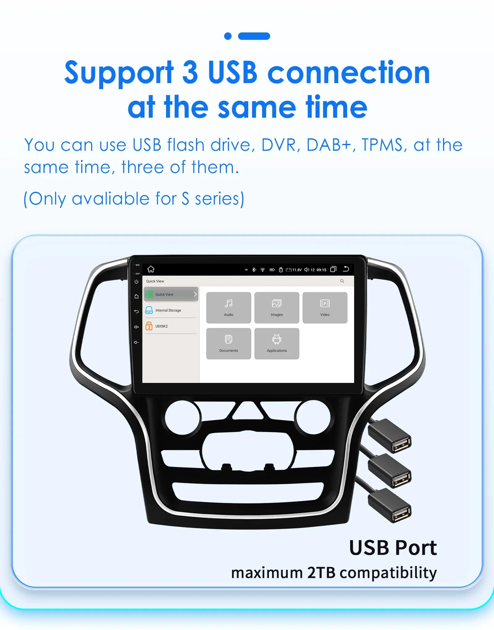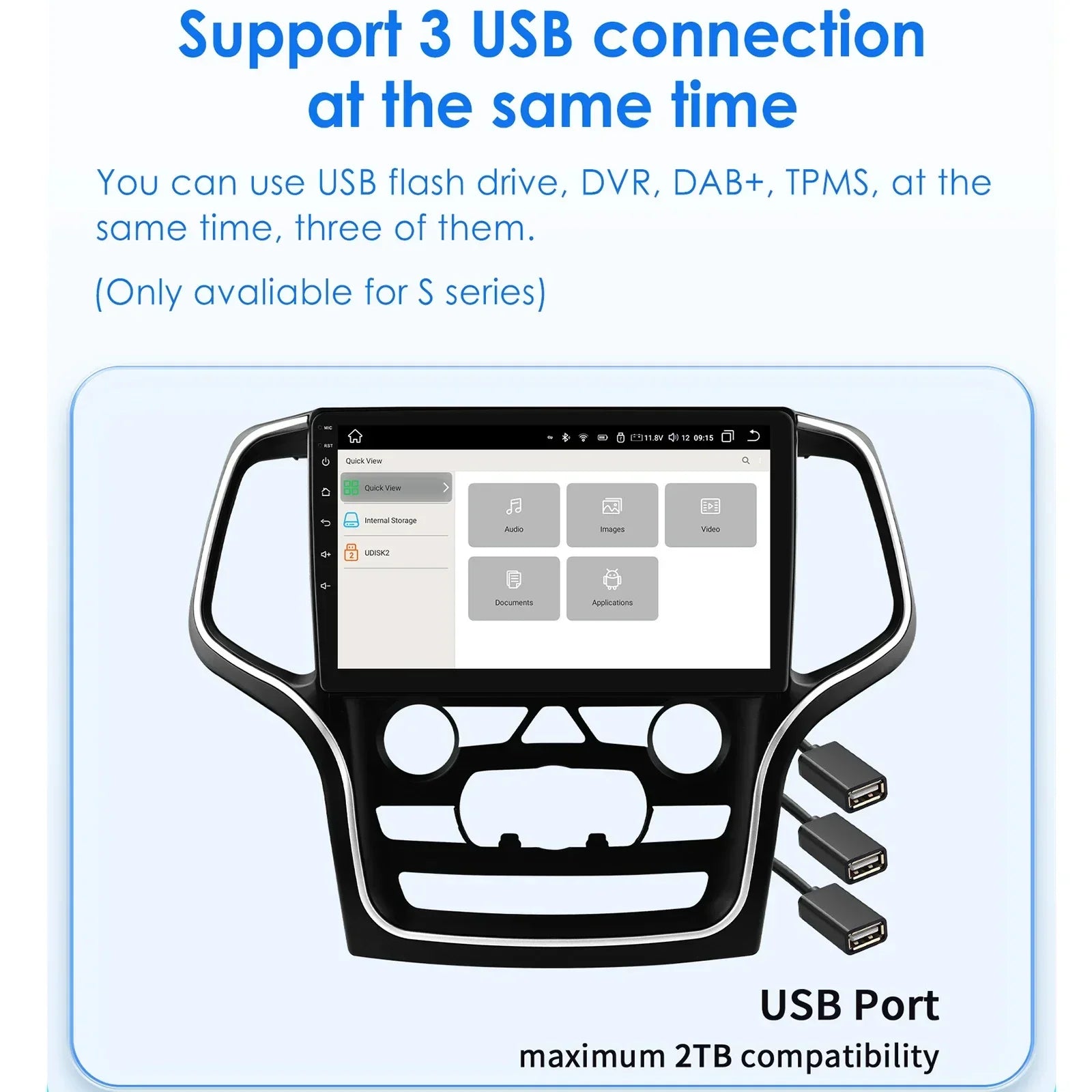 Jeep Grand Cherokee WK2 2014-2022 9" Android 14 Carplay Android auto wireless wifi bt gps 4g AUTMFH0Y
