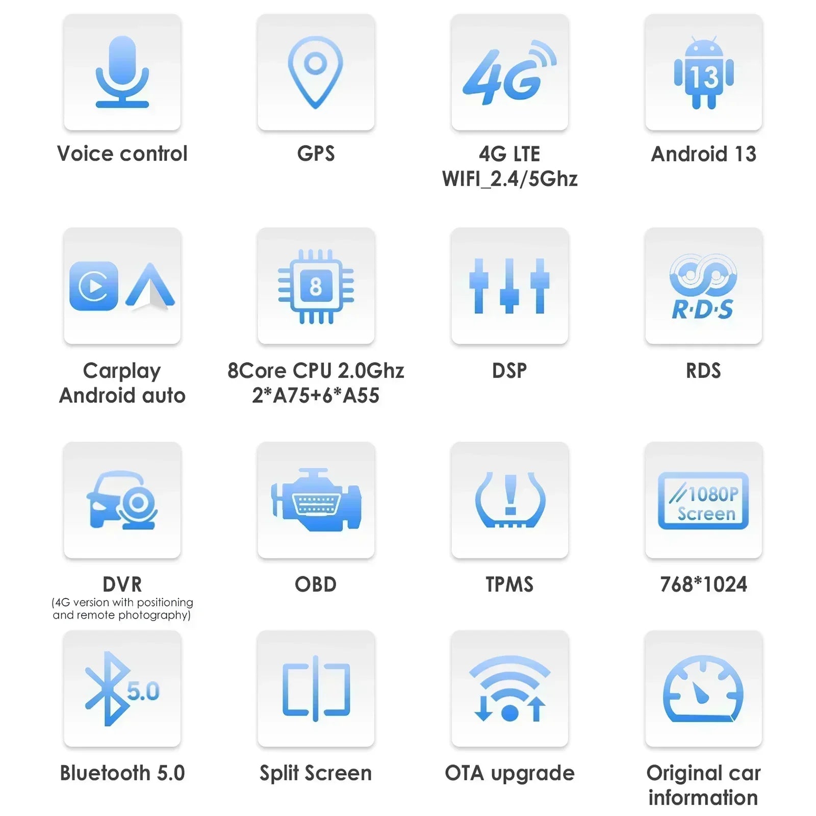 Chip radio professionale: ricezione di stazioni radio più stabili, meno rumore radio, prestazioni più elevate durante la guida. (Utilizziamo 4745, TDA7708 e IC radio integrato in diverse configurazioni di prodotti, per le specifiche diverse fare riferimento alla tabella di configurazione dei prodotti.)