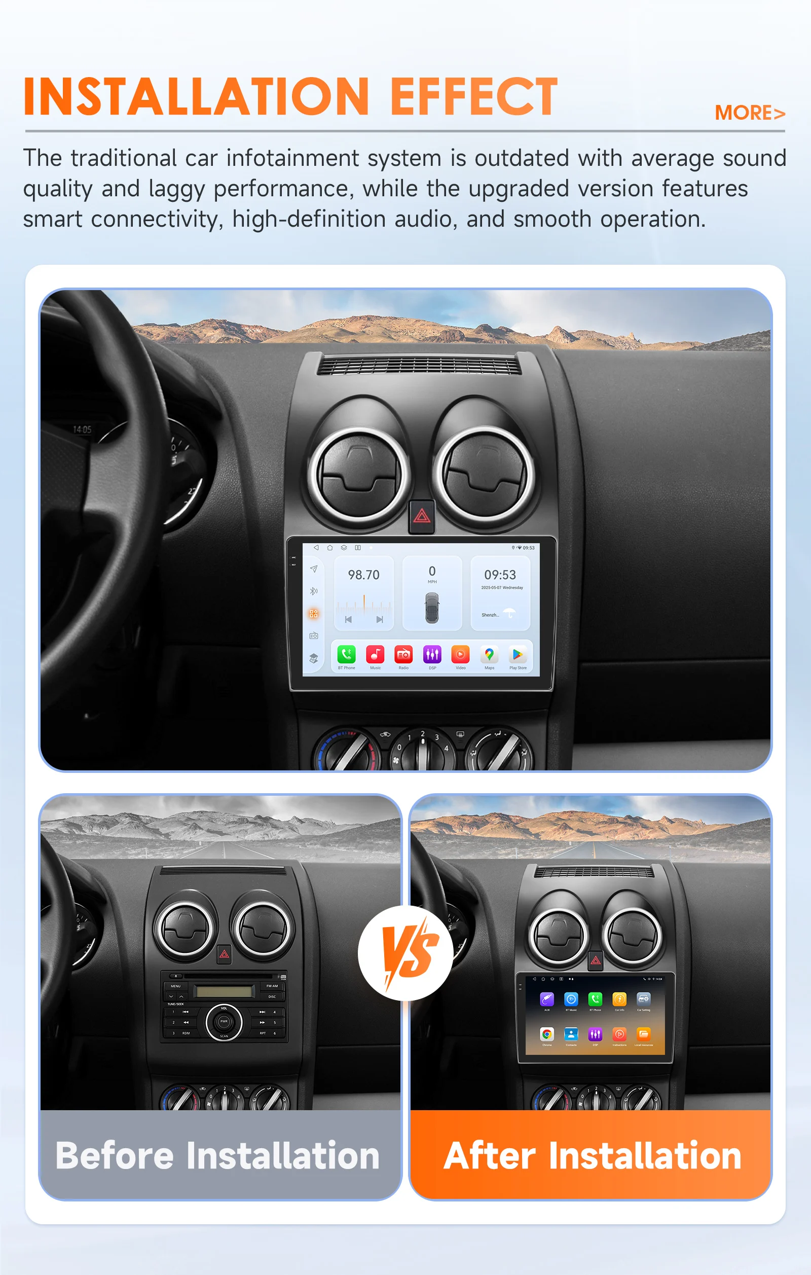 Nissan Qashqai J10 2006-2013 9" Android 14 Carplay Android auto wireless wifi bt gps 4g AUTM63FU