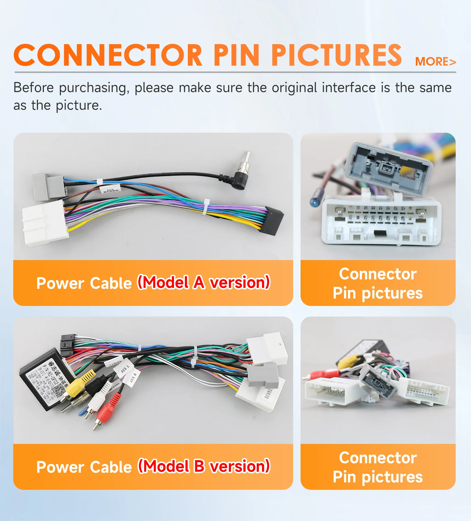 Tipo B: con canbus, non supporta la telecamera a 360° (se si desidera supportare la funzione della telecamera a 360°, è possibile contattare il servizio per ordinare un Canbus aggiuntivo da supportare)