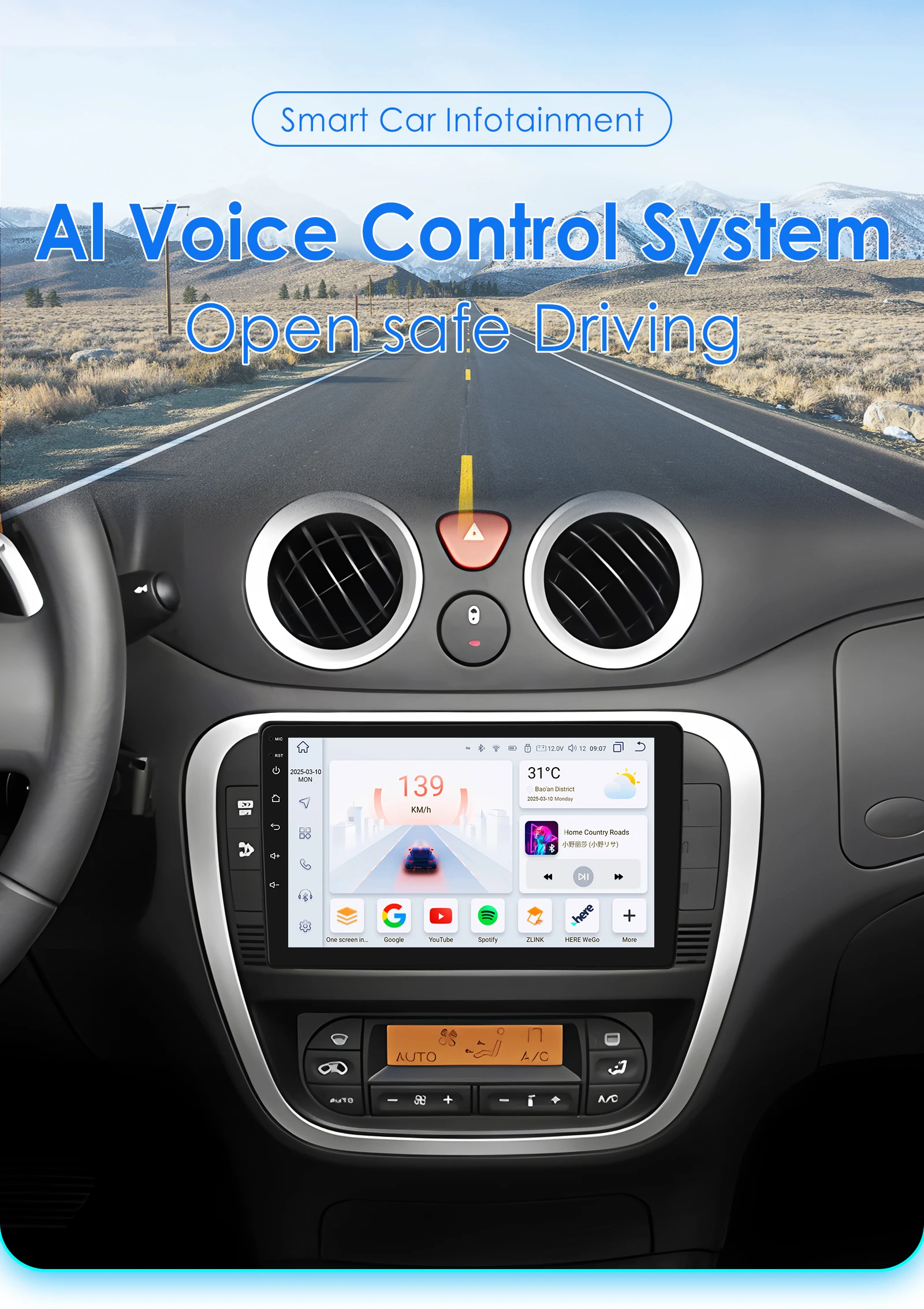 Intrattenimento per auto intelligente: sistema di controllo vocale AI Apri guida sicura