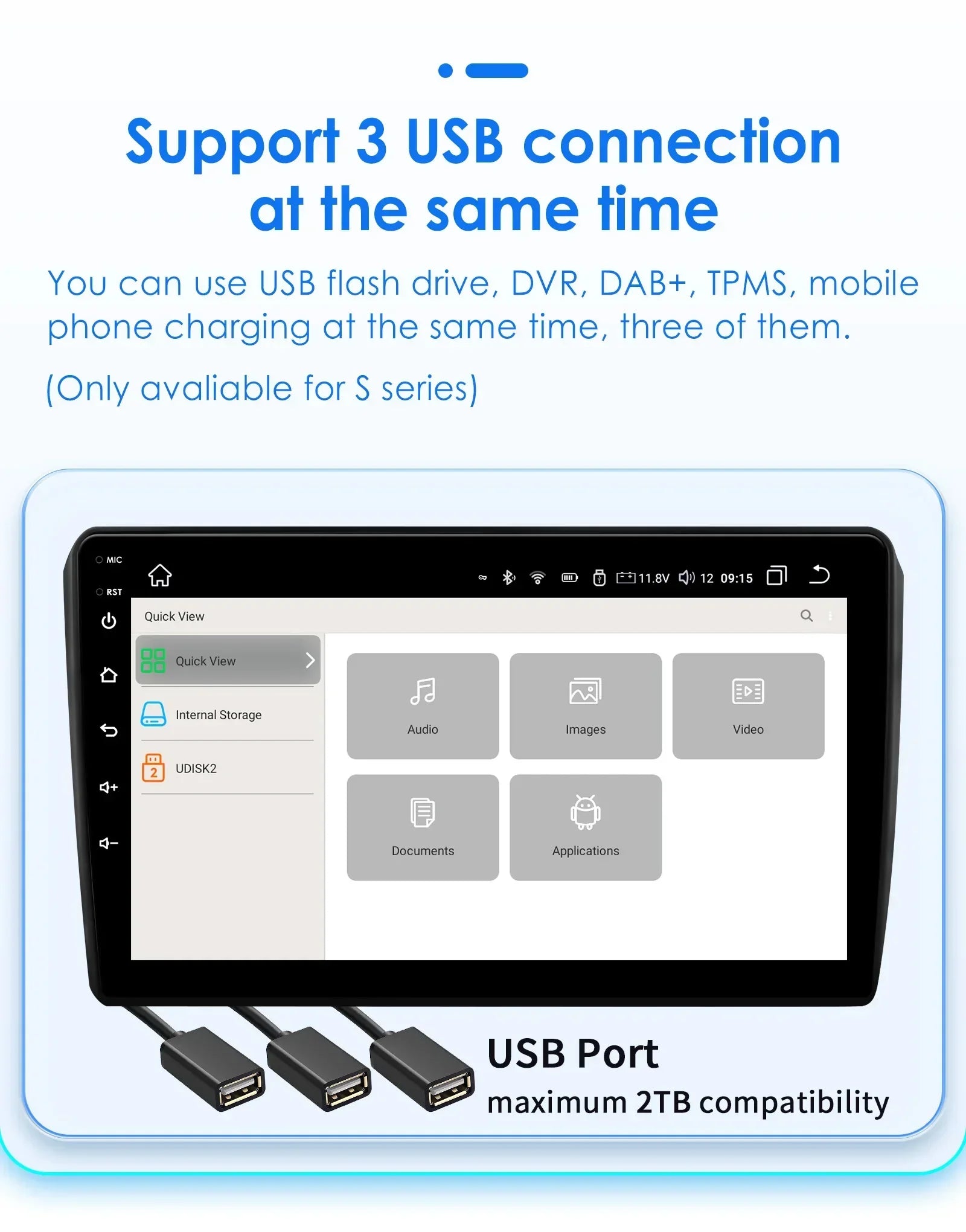 Chip radio professionale: ricezione di stazioni radio più stabili, meno rumore radio, prestazioni più elevate durante la guida. (Utilizziamo 4745, TDA7708 e IC radio integrato in diverse configurazioni di prodotti, per le specifiche diverse fare riferimento alla tabella di configurazione dei prodotti.) Bluetooth 5.0 Dual Channel: connessione Bluetooth stabile e a lunga distanza. Connessione WIFI stabile e a lunga distanza. (Sull'interfaccia principale può essere visualizzato "Visualizzazione del modello di batteria del telefono")