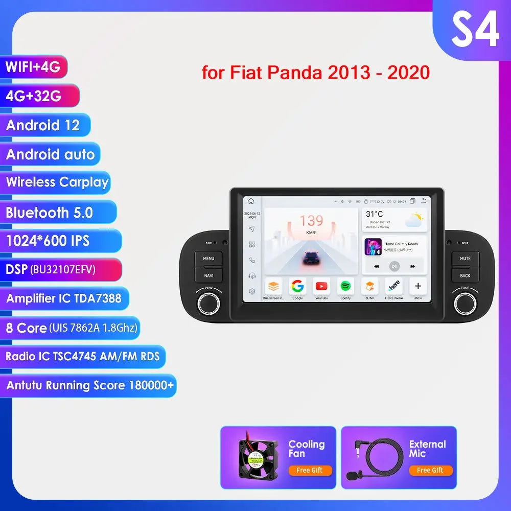 Fiat Panda 2013 - 2020 7" Android 14 Carplay Android auto wireless wifi bt gps 4g AUTMZWUS