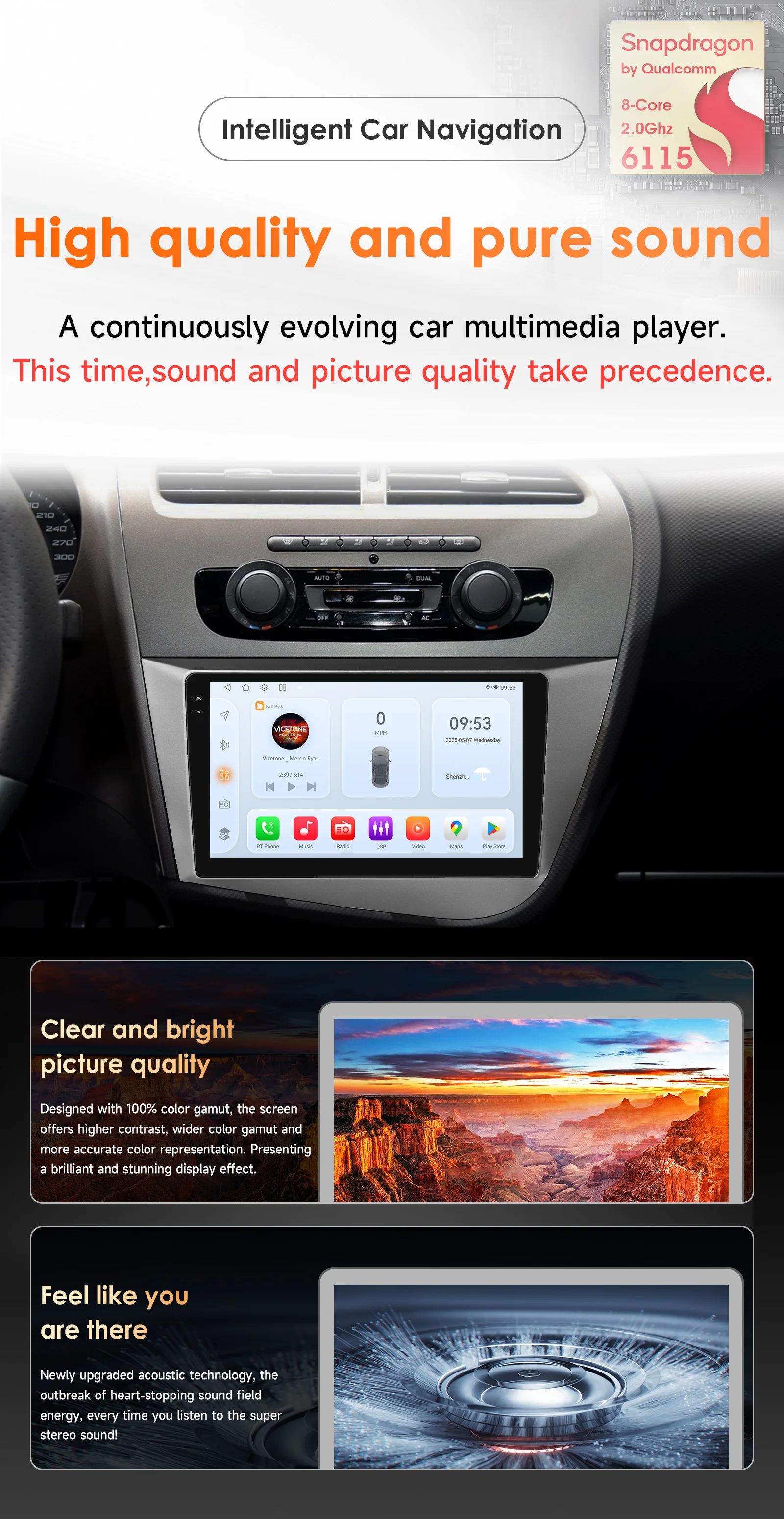 We have hired professional sound engineers to optimise and adjust the audio parameters of our products, ensuring that the audio performance is no less impressive than most original car audio systems. DSP AKM AK7738